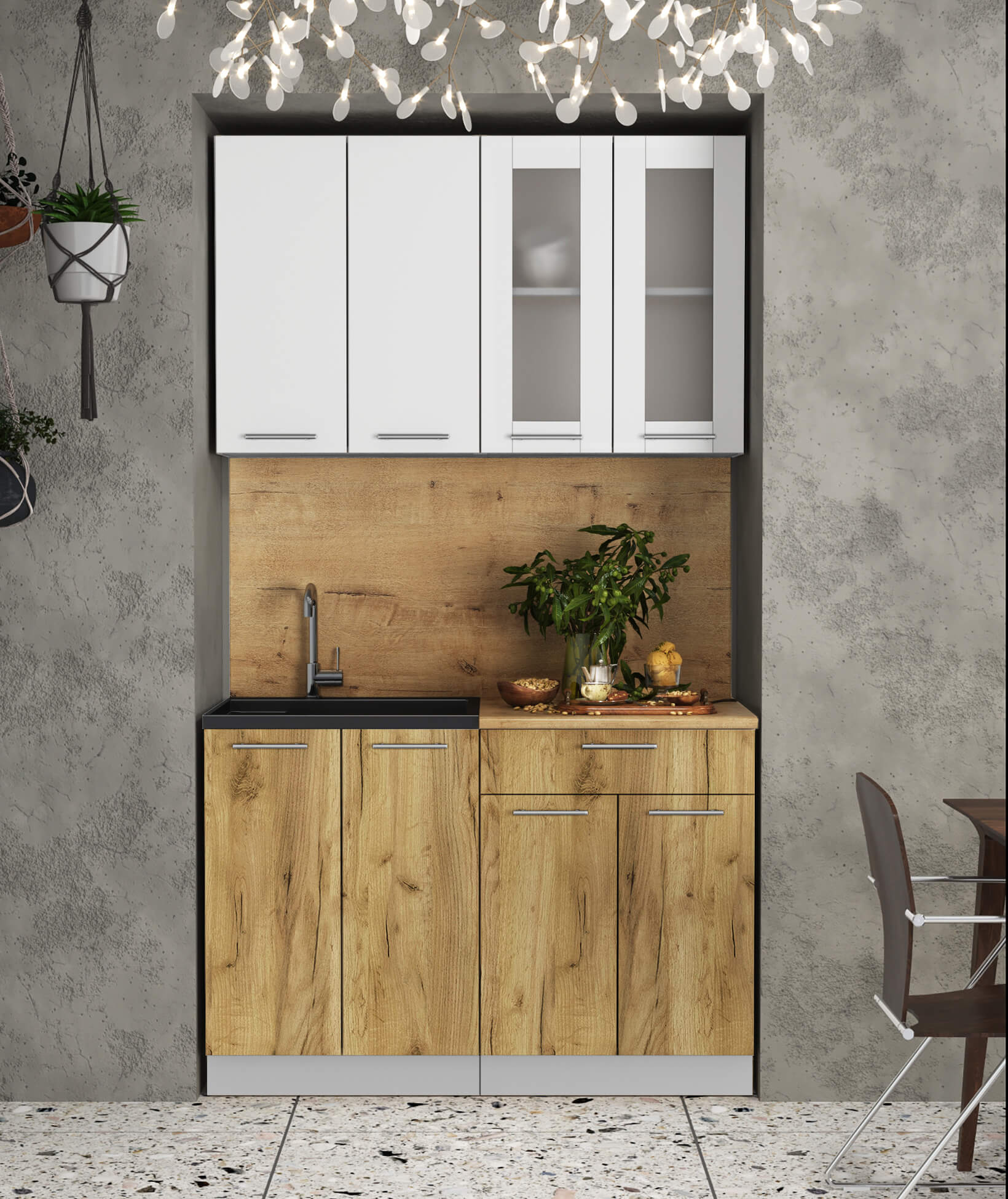 ГОТОВАЯ КУХНЯ МИЛА 1,2 (БЕЛЫЙ/ ДУБ ЗОЛОТОЙ) - Yuta.by
