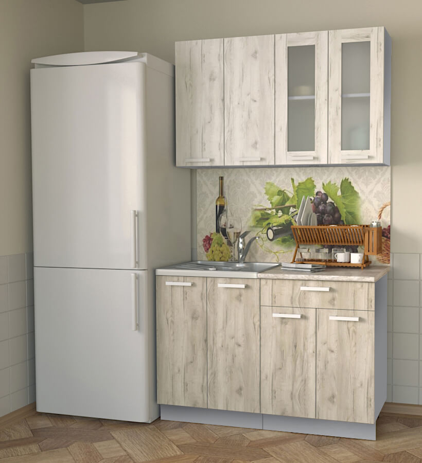 ГОТОВАЯ КУХНЯ МИЛА 1,2 (ДУБ БЕЛЫЙ/ ДУБ СЕРЫЙ) - Yuta.by