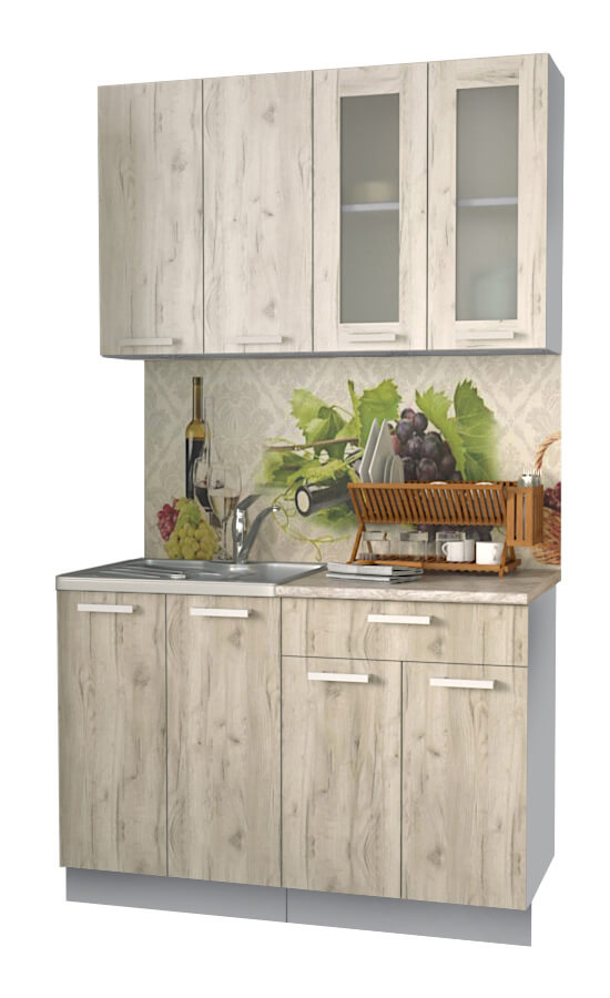 ГОТОВАЯ КУХНЯ МИЛА 1,2 (ДУБ БЕЛЫЙ/ ДУБ СЕРЫЙ)
