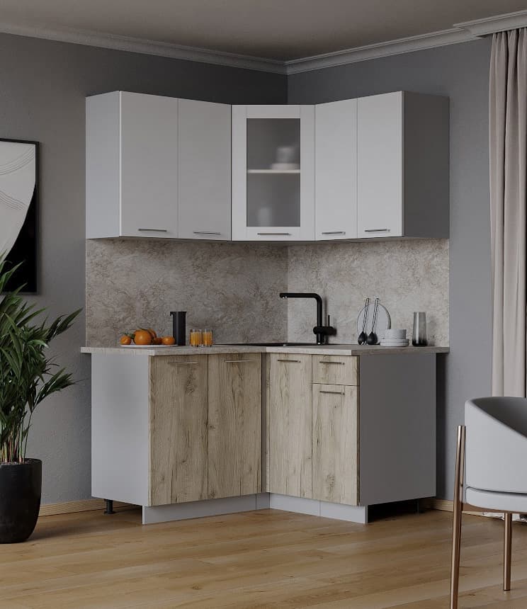 ГОТОВАЯ КУХНЯ МИЛА 1,2X1,2 (БЕЛЫЙ/ ДУБ СЕРЫЙ) - Yuta.by
