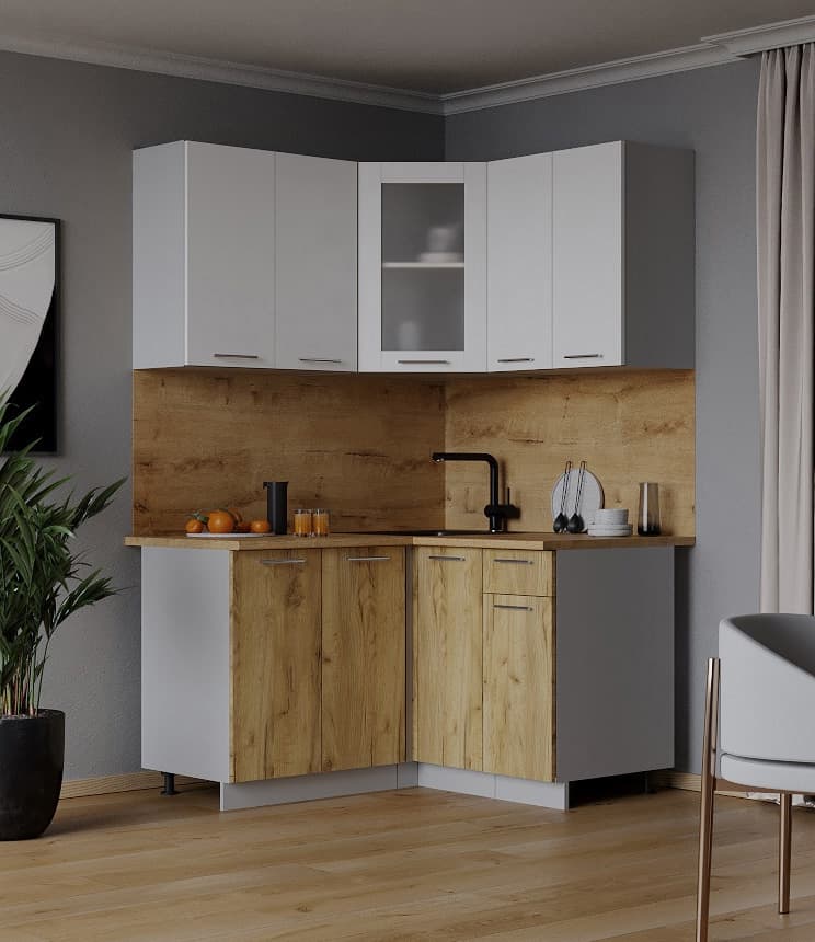 ГОТОВАЯ КУХНЯ МИЛА 1,2X1,2 (БЕЛЫЙ/ ДУБ ЗОЛОТОЙ) - Yuta.by