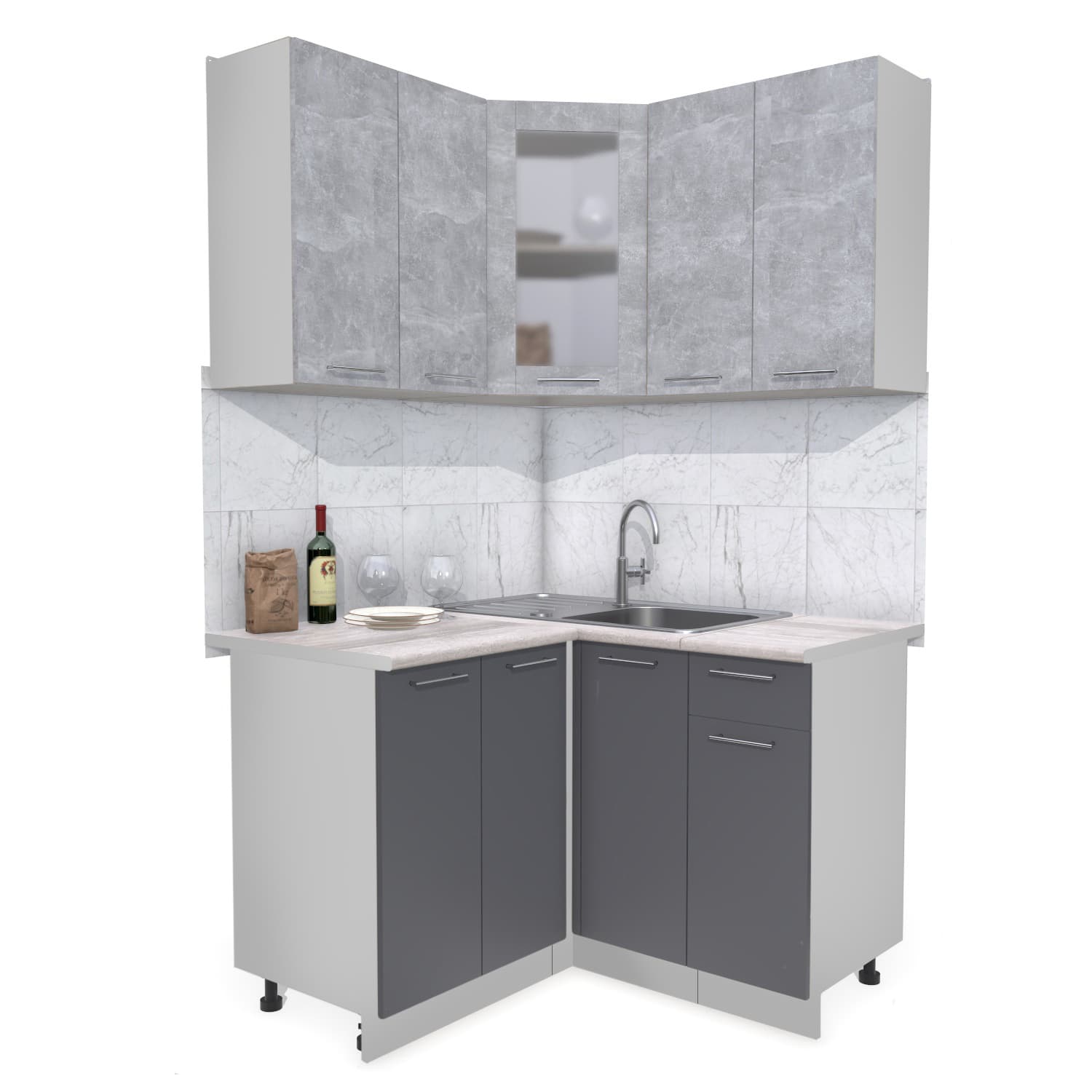 ГОТОВАЯ КУХНЯ МИЛА 1,2X1,2 (БЕТОН/ АНТРАЦИТ) - Yuta.by