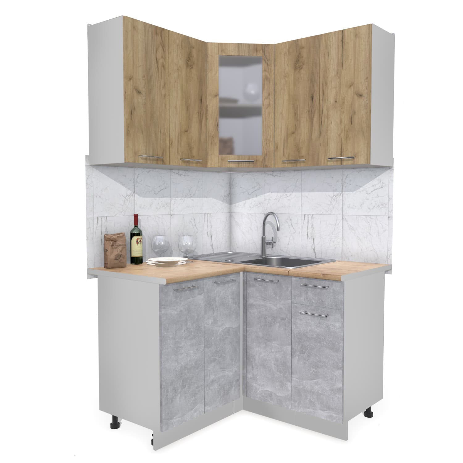 ГОТОВАЯ КУХНЯ МИЛА 1,2X1,2 (ДУБ ЗОЛОТОЙ/ БЕТОН) - Yuta.by