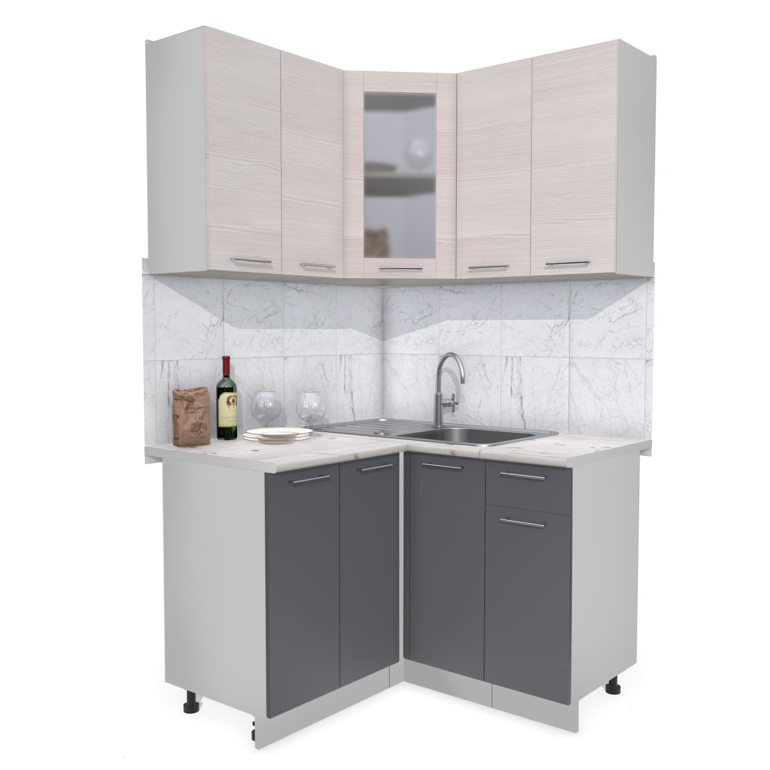ГОТОВАЯ КУХНЯ МИЛА 1,2X1,2 (ВУДЛАЙН КРЕМОВЫЙ/ АНТРАЦИТ) - Yuta.by