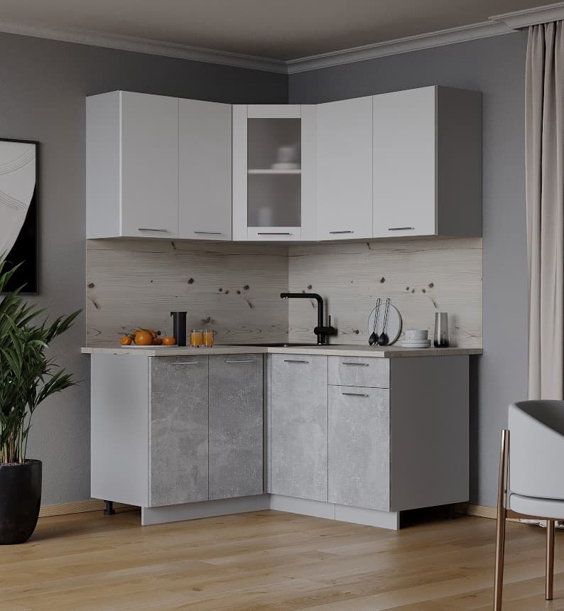 ГОТОВАЯ КУХНЯ МИЛА 1,2X1,4 (БЕЛЫЙ/ БЕТОН)