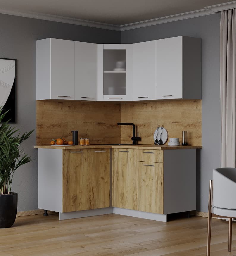 ГОТОВАЯ КУХНЯ МИЛА 1,2X1,4 (БЕЛЫЙ/ ДУБ ЗОЛОТОЙ) - Yuta.by