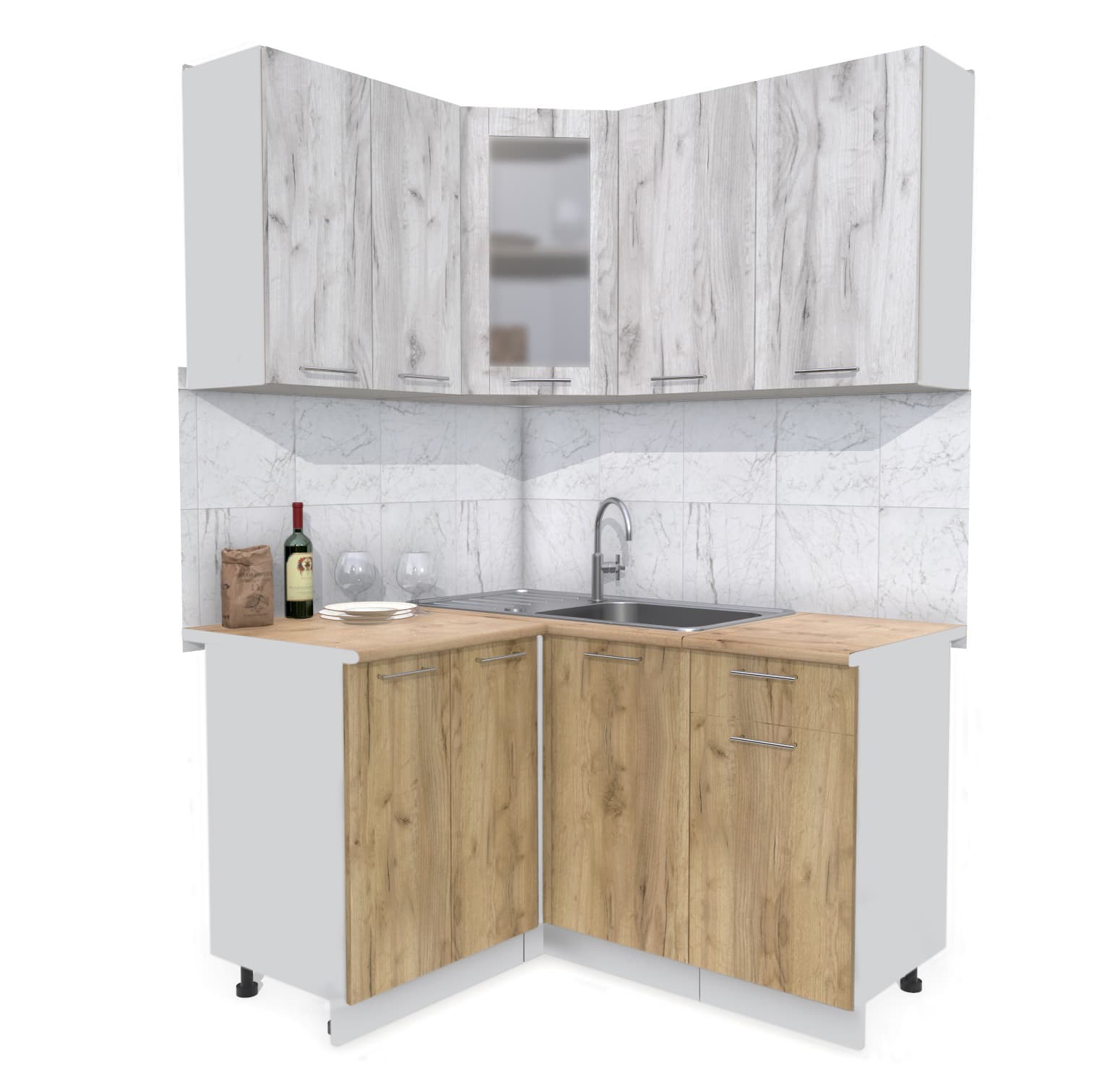 ГОТОВАЯ КУХНЯ МИЛА 1,2X1,4 (ДУБ БЕЛЫЙ/ ДУБ ЗОЛОТОЙ) - Yuta.by