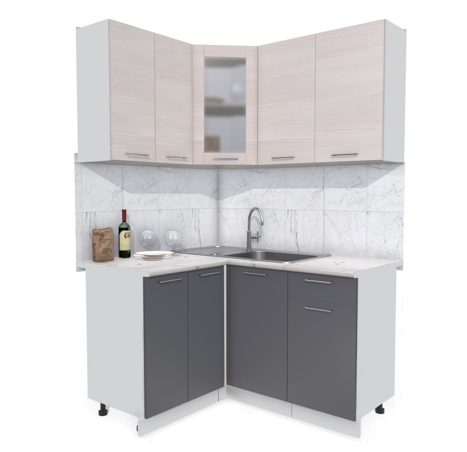ГОТОВАЯ КУХНЯ МИЛА 1,2X1,4 (ВУДЛАЙН КРЕМОВЫЙ/ АНТРАЦИТ) - Yuta.by