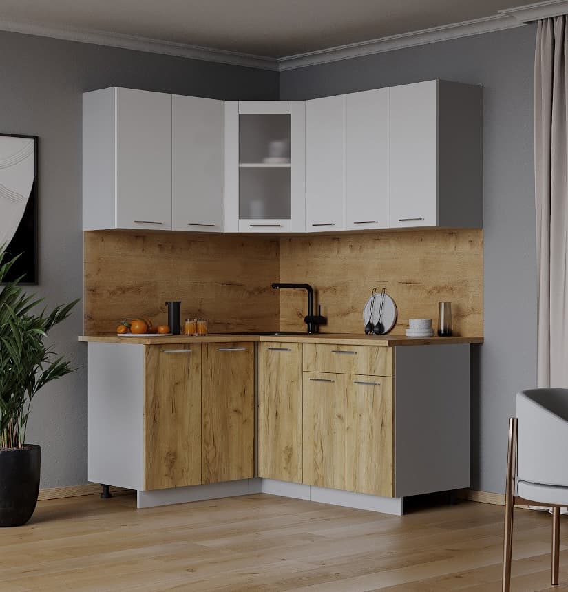 ГОТОВАЯ КУХНЯ МИЛА 1,2X1,5 (БЕЛЫЙ/ ДУБ ЗОЛОТОЙ) - Yuta.by