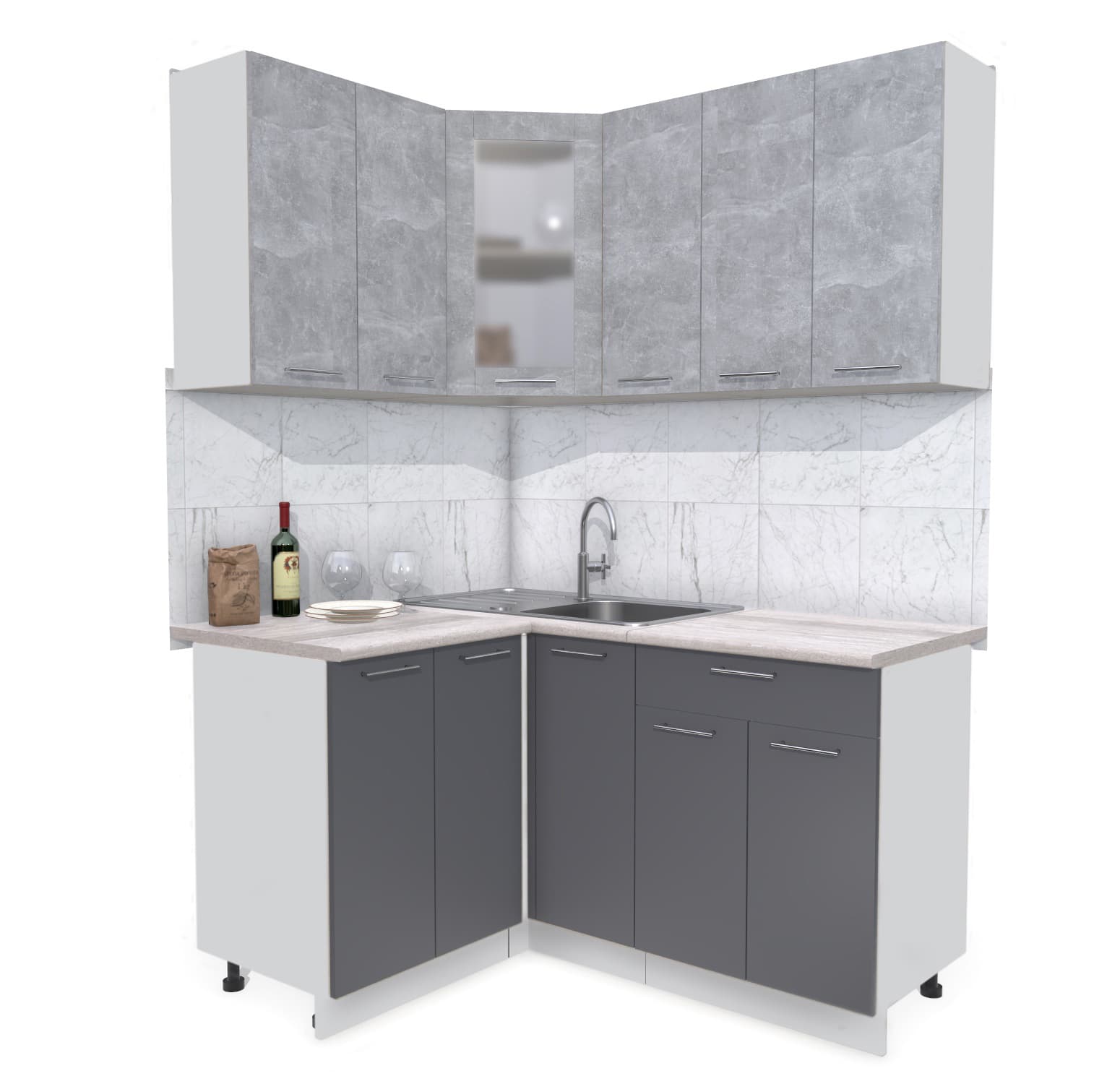 ГОТОВАЯ КУХНЯ МИЛА 1,2X1,5 (БЕТОН/ АНТРАЦИТ) - Yuta.by