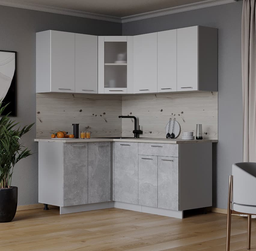 ГОТОВАЯ КУХНЯ МИЛА 1,2X1,6 (БЕЛЫЙ/ БЕТОН)