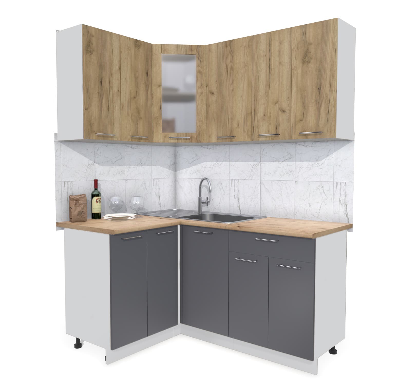 ГОТОВАЯ КУХНЯ МИЛА 1,2X1,6 (ДУБ ЗОЛОТОЙ/ АНТРАЦИТ) - Yuta.by