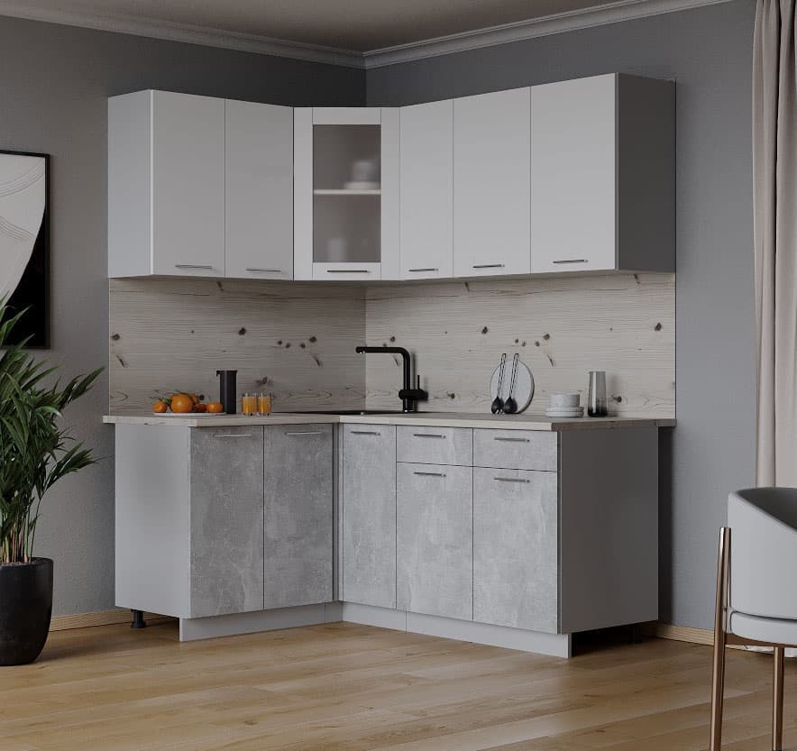 ГОТОВАЯ КУХНЯ МИЛА 1,2X1,7 (БЕЛЫЙ/ БЕТОН) - Yuta.by