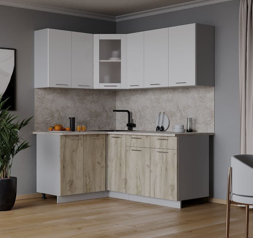 ГОТОВАЯ КУХНЯ МИЛА 1,2X1,7 (БЕЛЫЙ/ ДУБ СЕРЫЙ) - Yuta.by