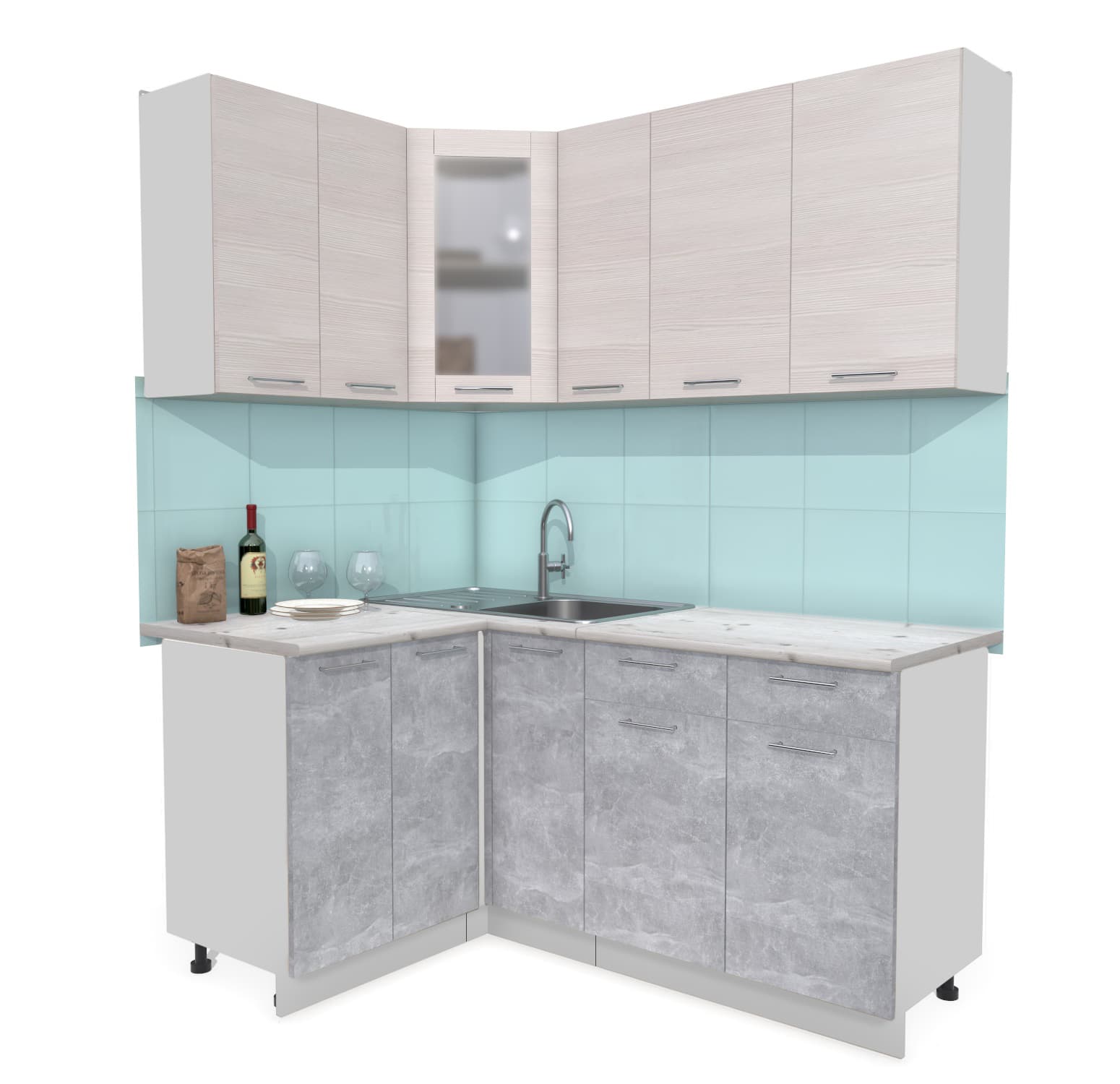 ГОТОВАЯ КУХНЯ МИЛА 1,2X1,7 (ВУДЛАЙН КРЕМОВЫЙ/ БЕТОН) - Yuta.by
