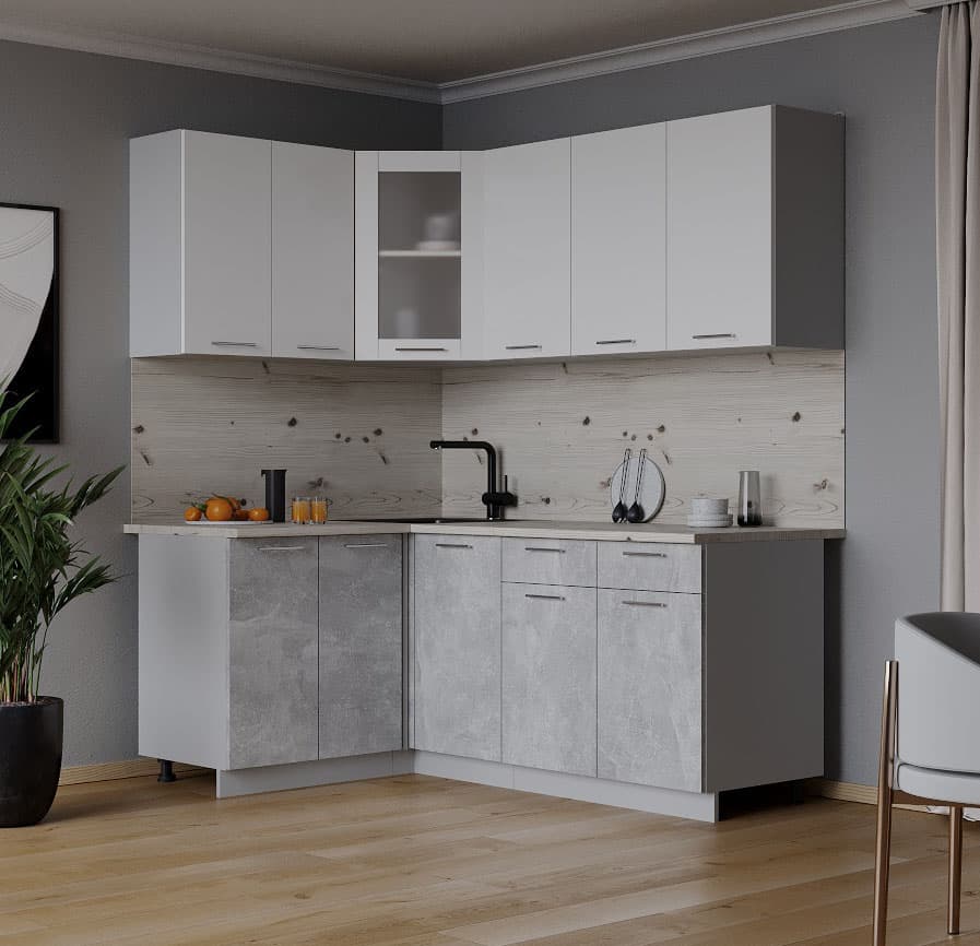 ГОТОВАЯ КУХНЯ МИЛА 1,2X1,8 (БЕЛЫЙ/ БЕТОН)