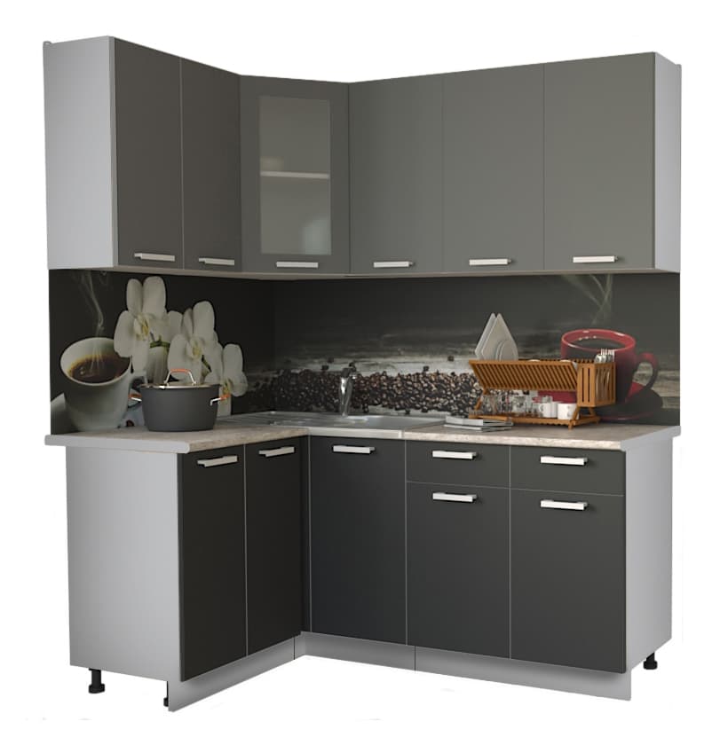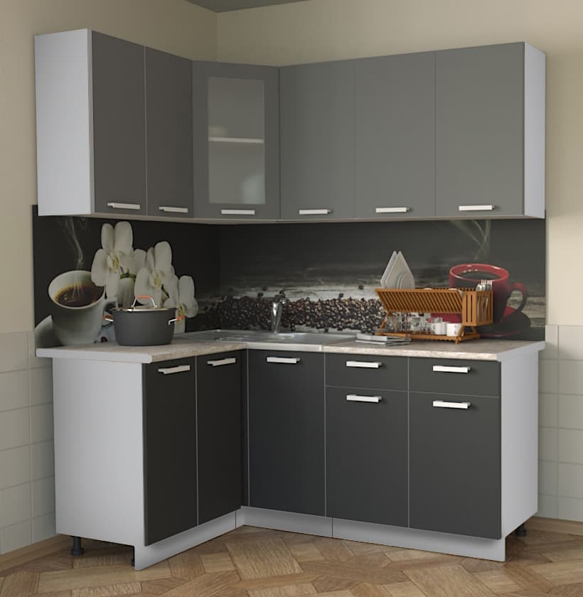 ГОТОВАЯ КУХНЯ МИЛА 1,2X1,8 (СЕРЕБРО/ АНТРАЦИТ)