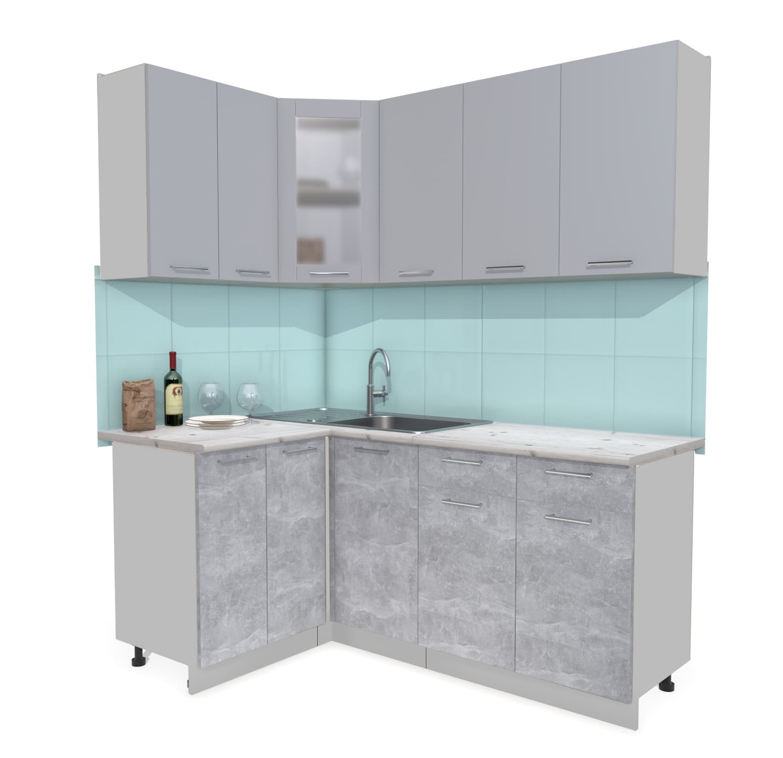 ГОТОВАЯ КУХНЯ МИЛА 1,2X1,8 (СЕРЕБРО/ БЕТОН) - Yuta.by