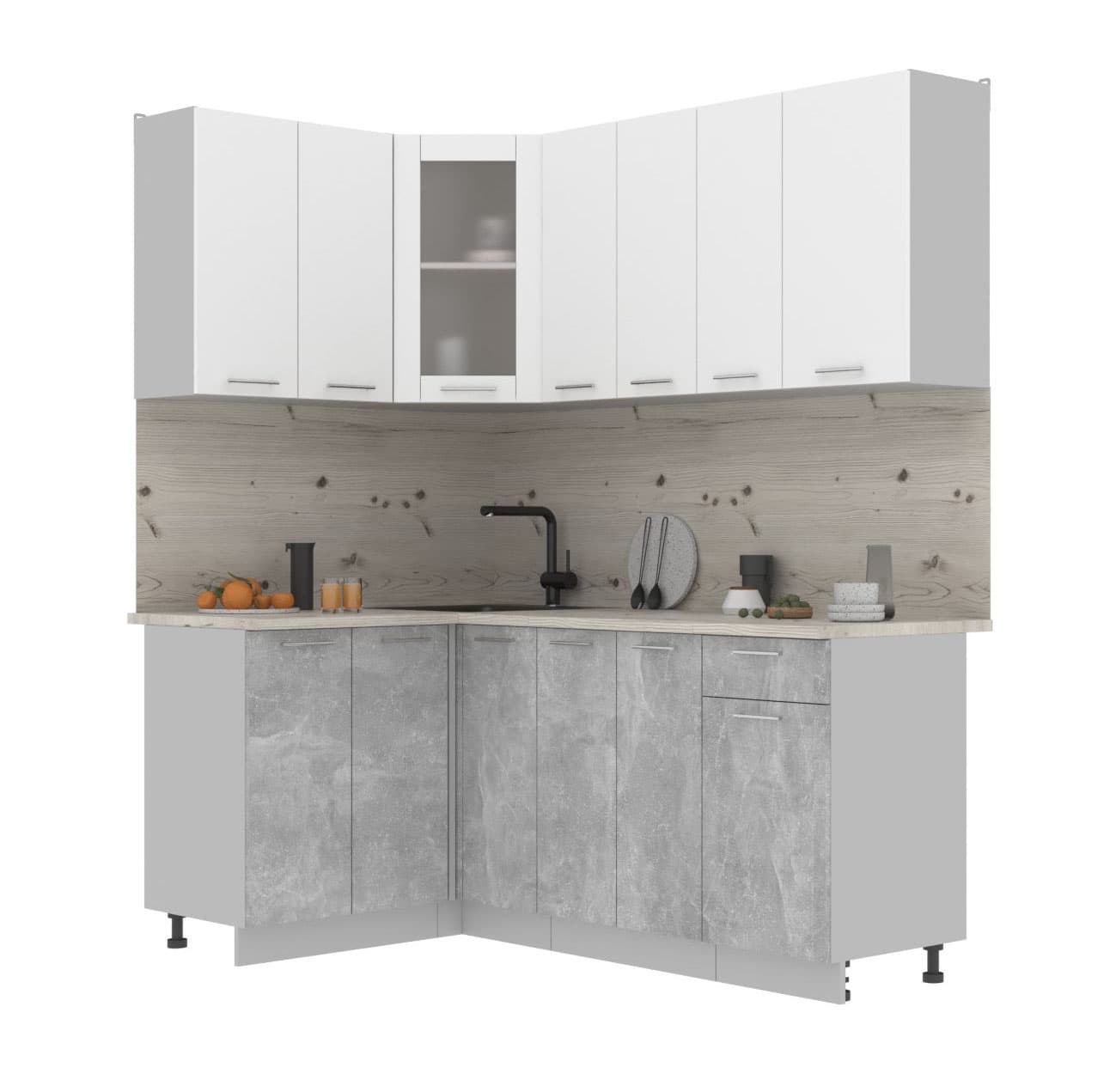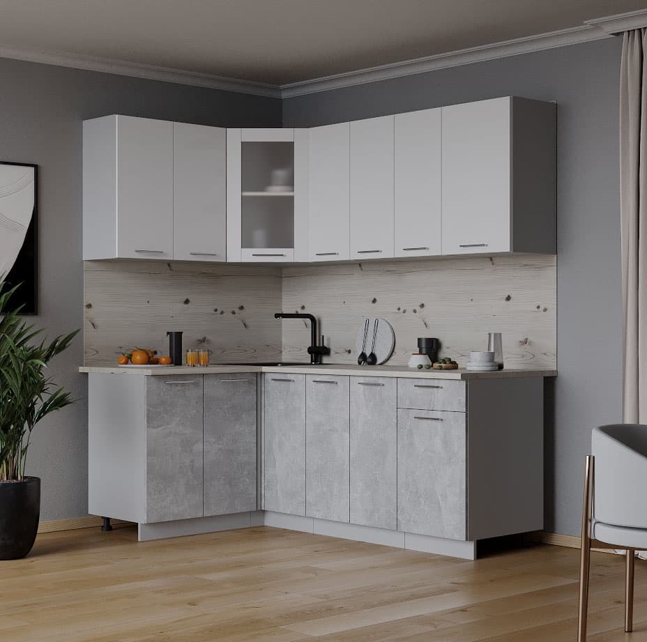 ГОТОВАЯ КУХНЯ МИЛА 1,2X1,9 (БЕЛЫЙ/ БЕТОН)