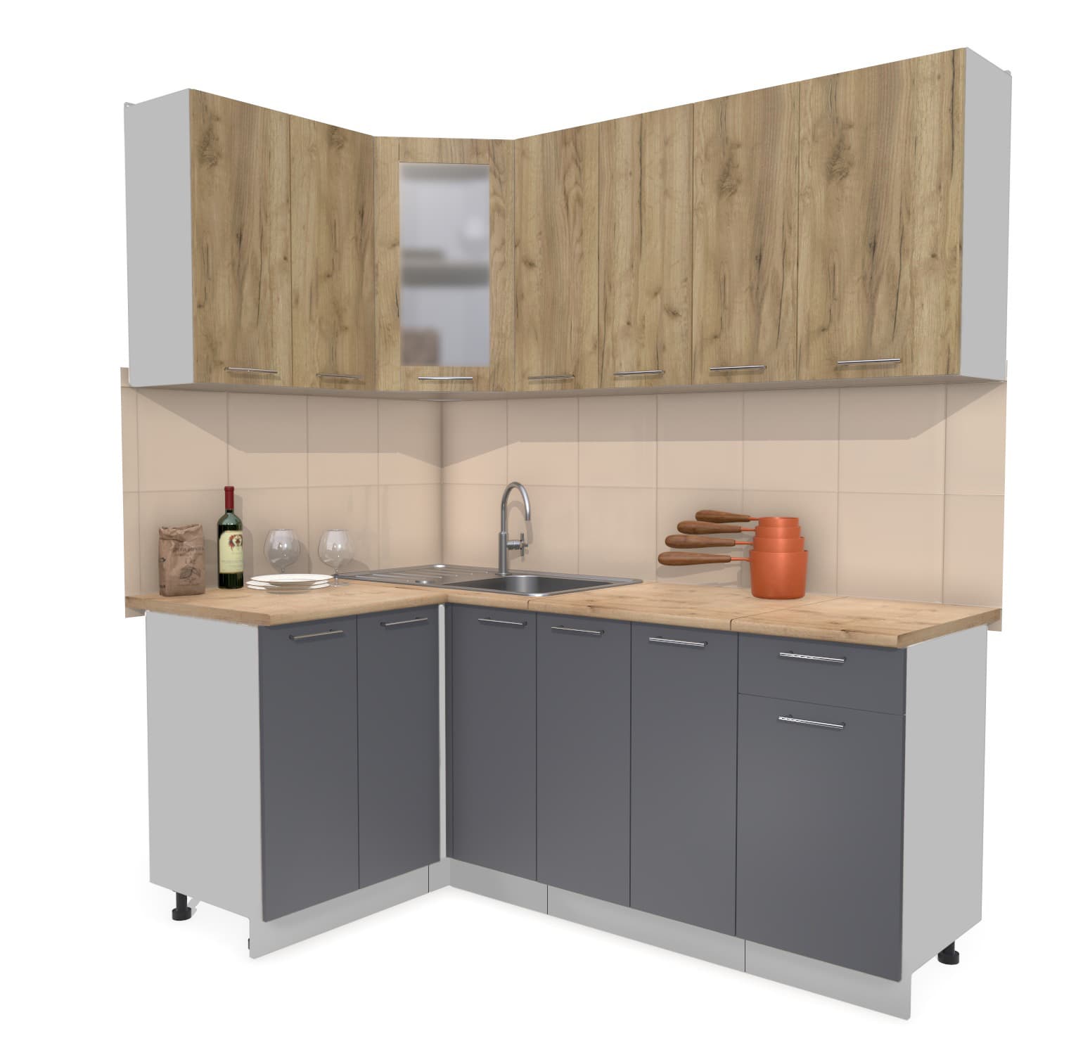 ГОТОВАЯ КУХНЯ МИЛА 1,2X1,9 (ДУБ ЗОЛОТОЙ/ АНТРАЦИТ)