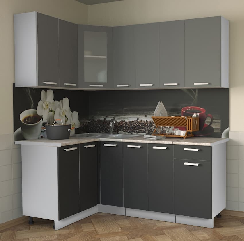 ГОТОВАЯ КУХНЯ МИЛА 1,2X1,9 (СЕРЕБРО/ АНТРАЦИТ) - Yuta.by