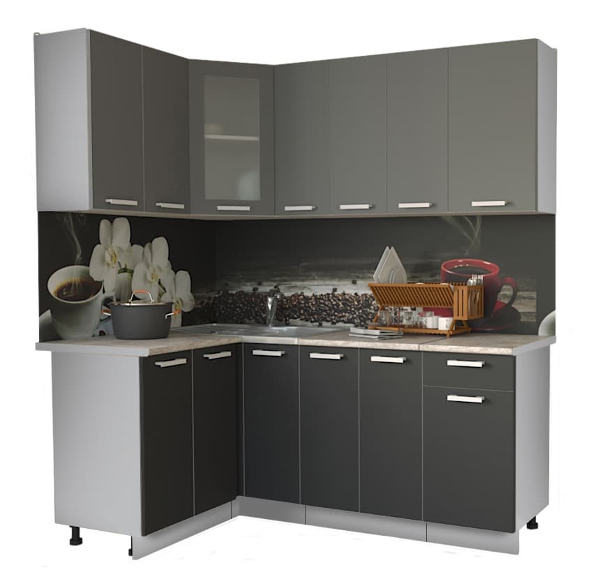 ГОТОВАЯ КУХНЯ МИЛА 1,2X1,9 (СЕРЕБРО/ АНТРАЦИТ)