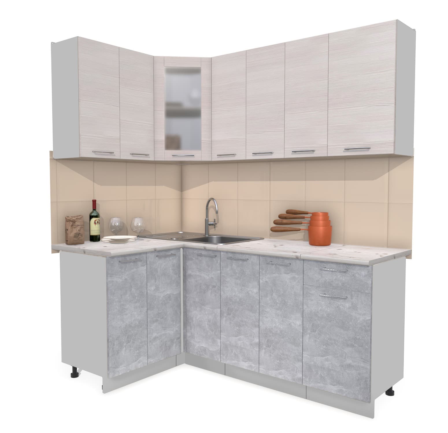 ГОТОВАЯ КУХНЯ МИЛА 1,2X1,9 (ВУДЛАЙН КРЕМОВЫЙ/ БЕТОН) - Yuta.by