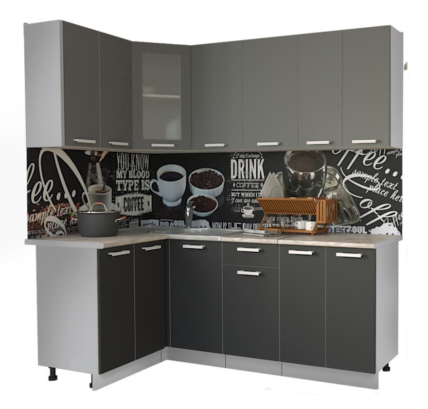 ГОТОВАЯ КУХНЯ МИЛА 1,2X2,0 (СЕРЕБРО/ АНТРАЦИТ) - Yuta.by