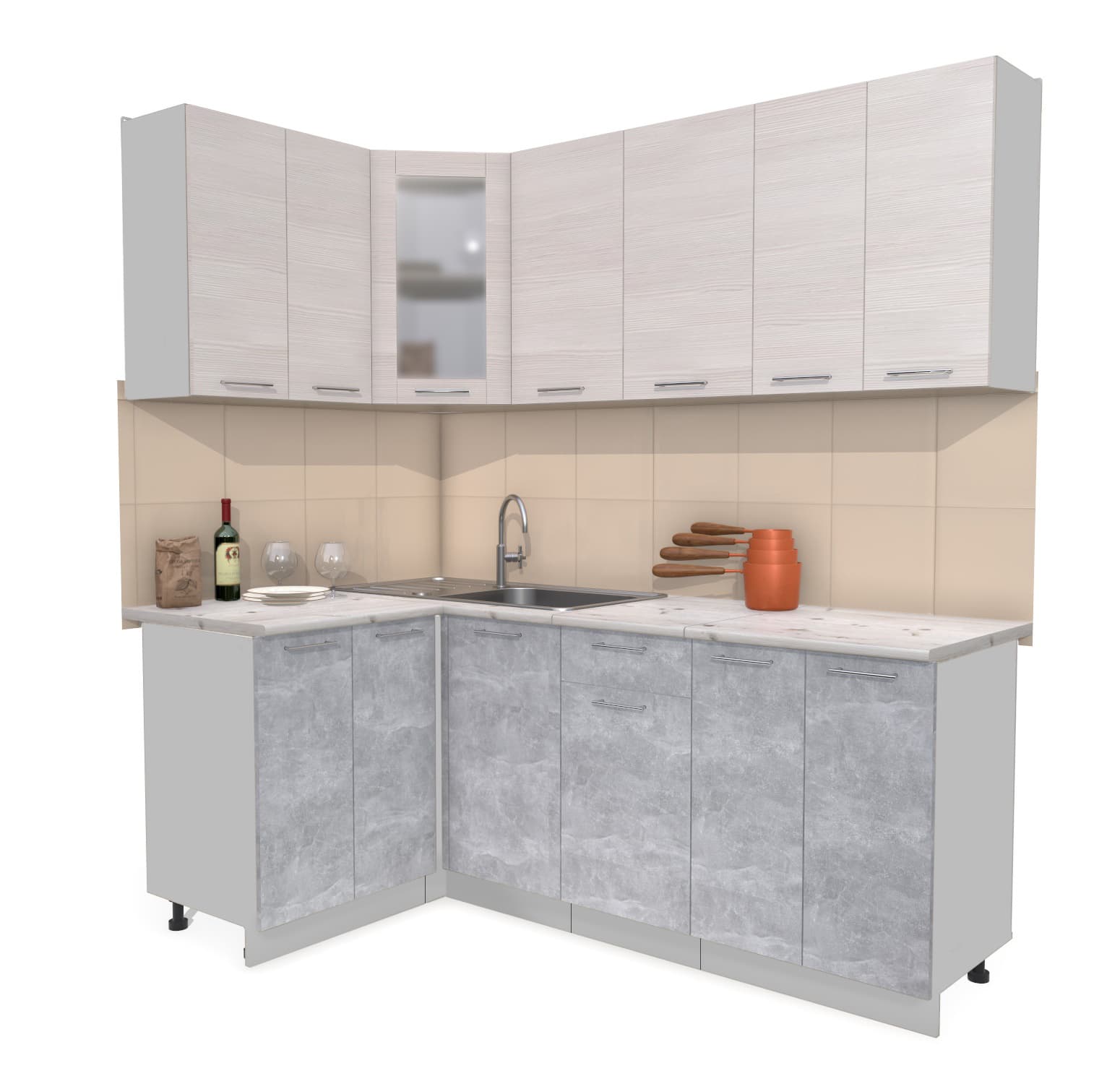 ГОТОВАЯ КУХНЯ МИЛА 1,2X2,0 (ВУДЛАЙН КРЕМОВЫЙ/ БЕТОН) - Yuta.by