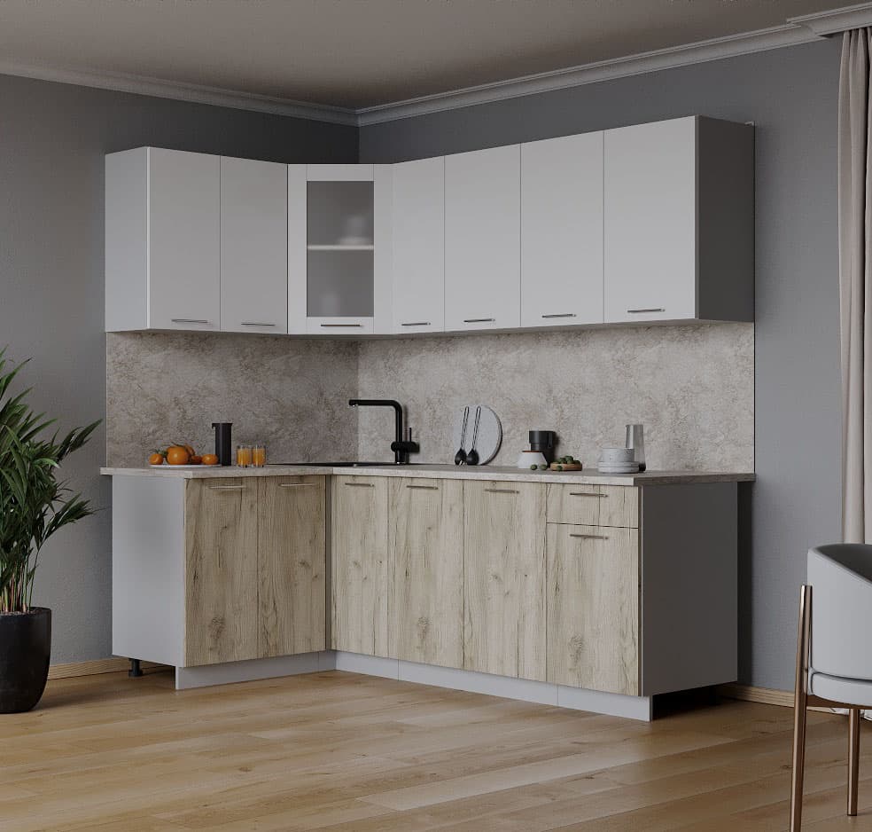 ГОТОВАЯ КУХНЯ МИЛА 1,2X2,1 (БЕЛЫЙ/ ДУБ СЕРЫЙ) - Yuta.by