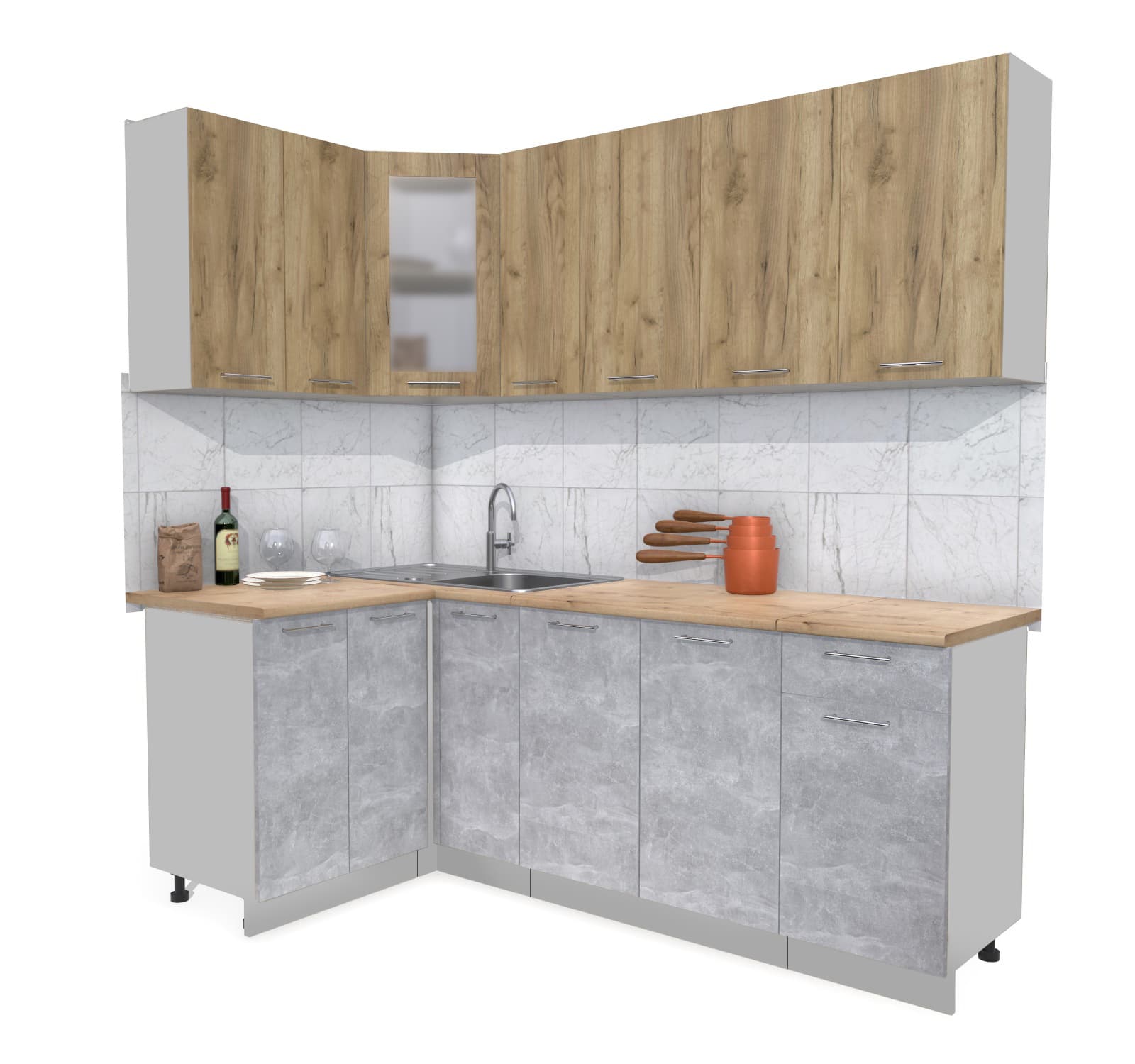 ГОТОВАЯ КУХНЯ МИЛА 1,2X2,1 (ДУБ ЗОЛОТОЙ/ БЕТОН)