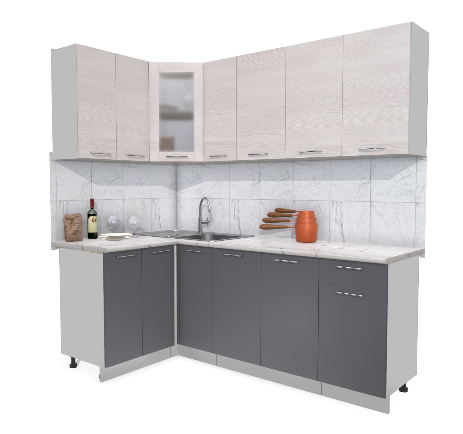 ГОТОВАЯ КУХНЯ МИЛА 1,2X2,1 (ВУДЛАЙН КРЕМОВЫЙ/ АНТРАЦИТ) - Yuta.by