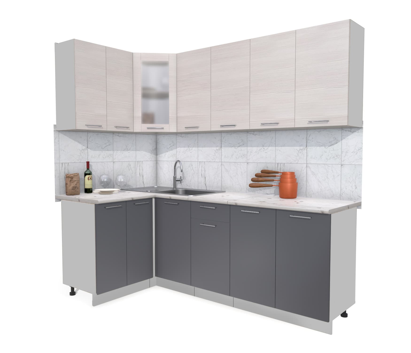 ГОТОВАЯ КУХНЯ МИЛА 1,2X2,2 (ВУДЛАЙН КРЕМОВЫЙ/ АНТРАЦИТ) - Yuta.by