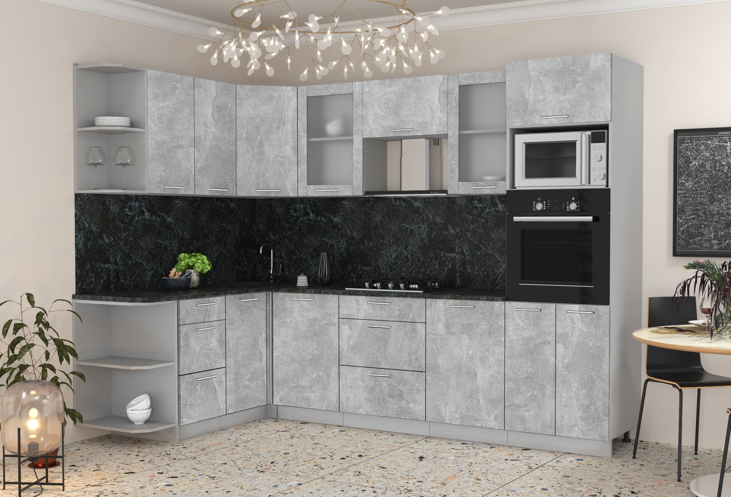 ГОТОВАЯ КУХНЯ МИЛА 1,68X2,80 (БЕТОН/ БЕТОН) - Yuta.by
