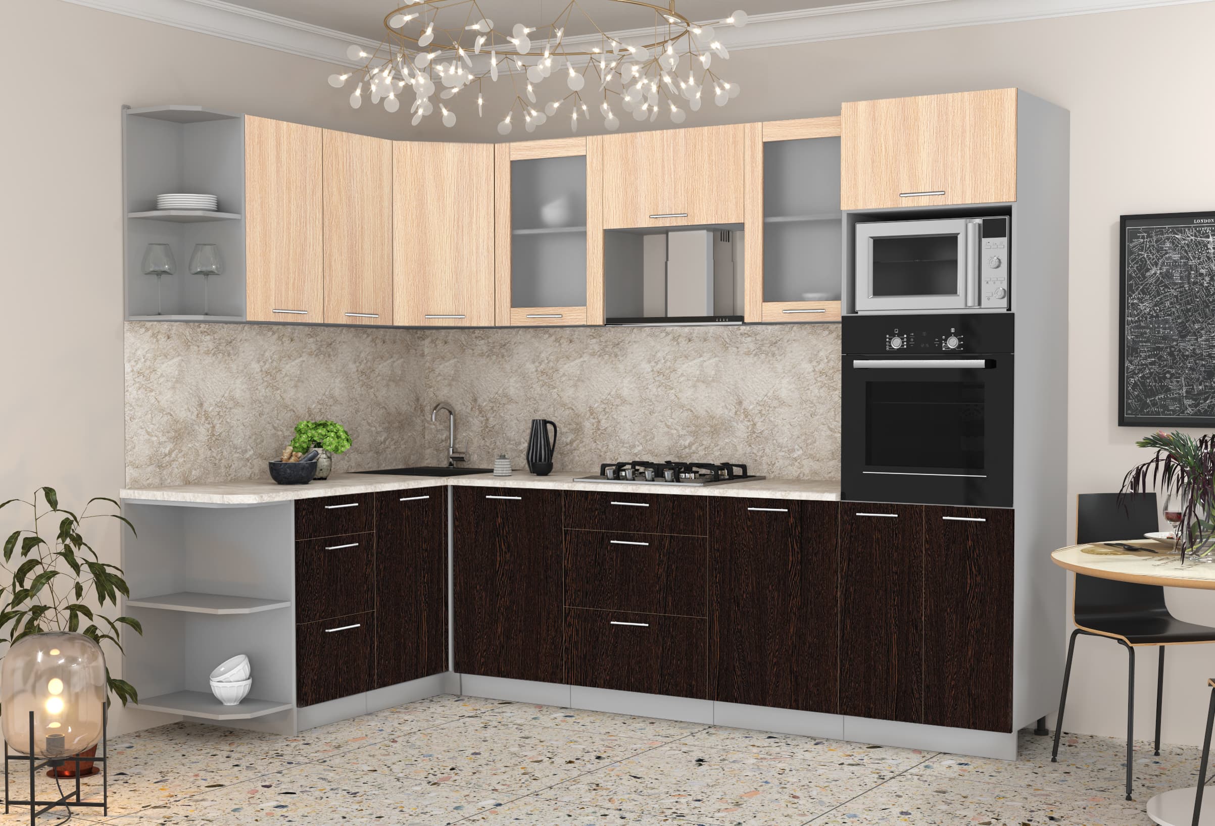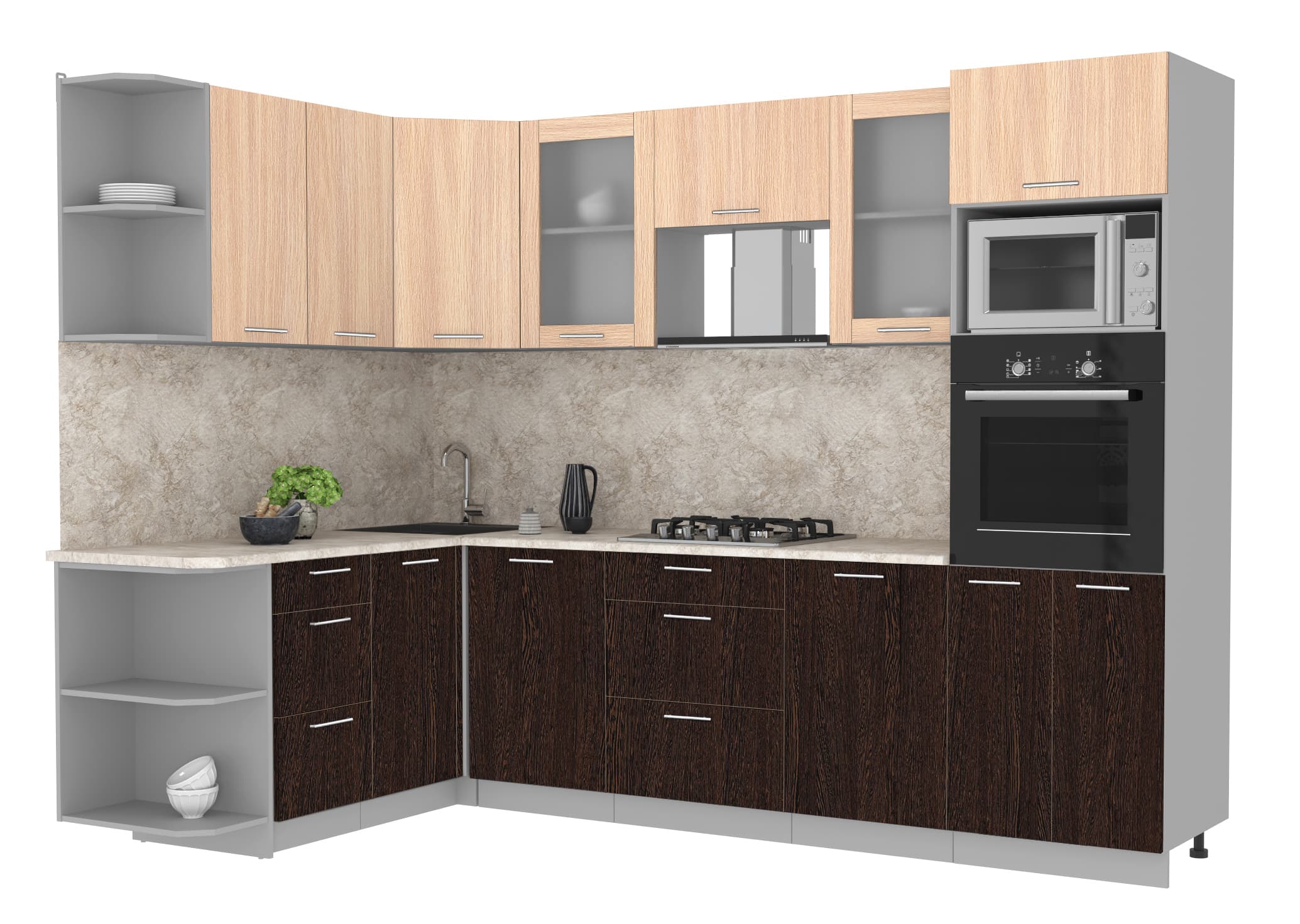 ГОТОВАЯ КУХНЯ МИЛА 1,68X2,80 (ДУБ МОЛОЧНЫЙ/ ВЕНГЕ) - Yuta.by