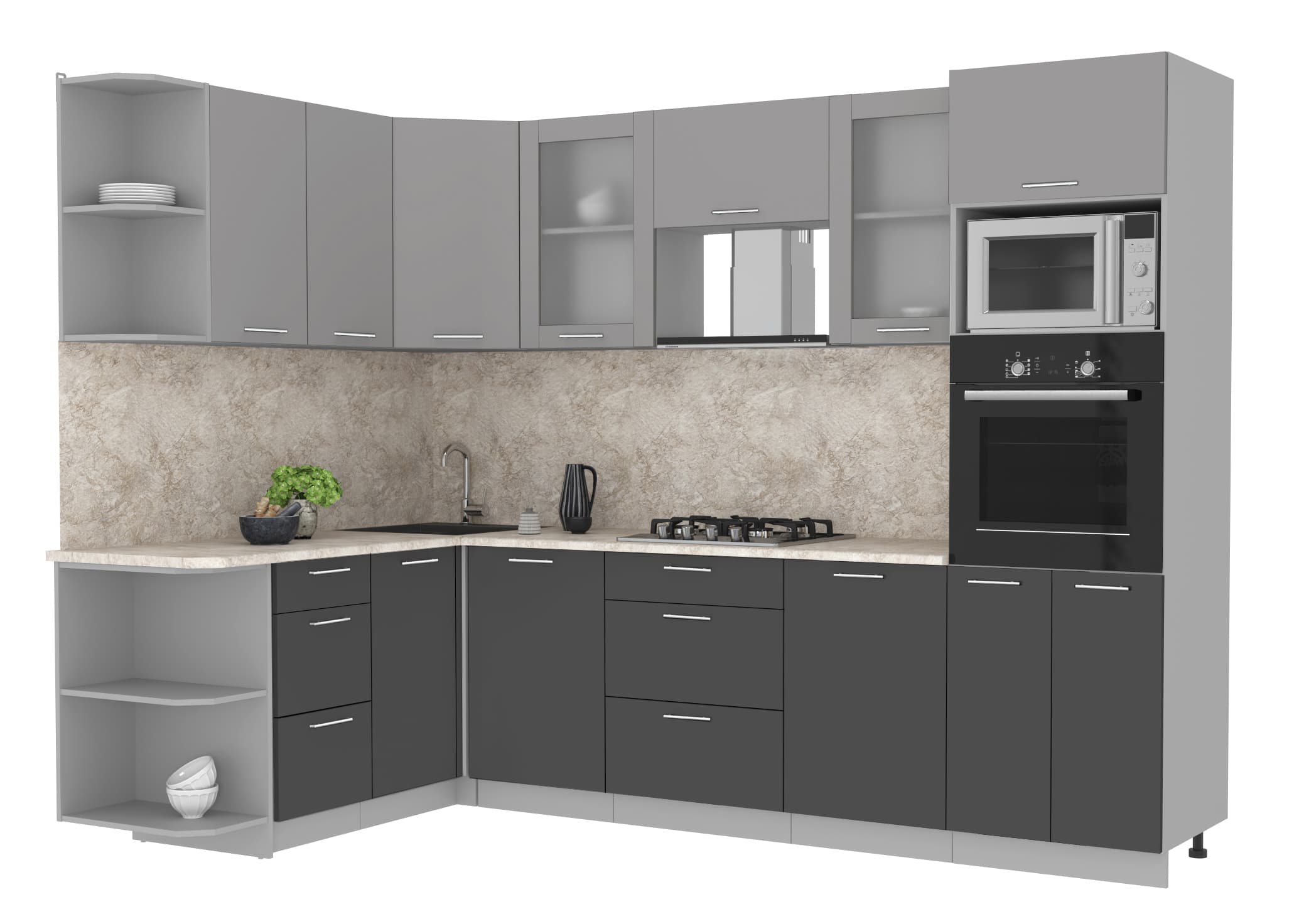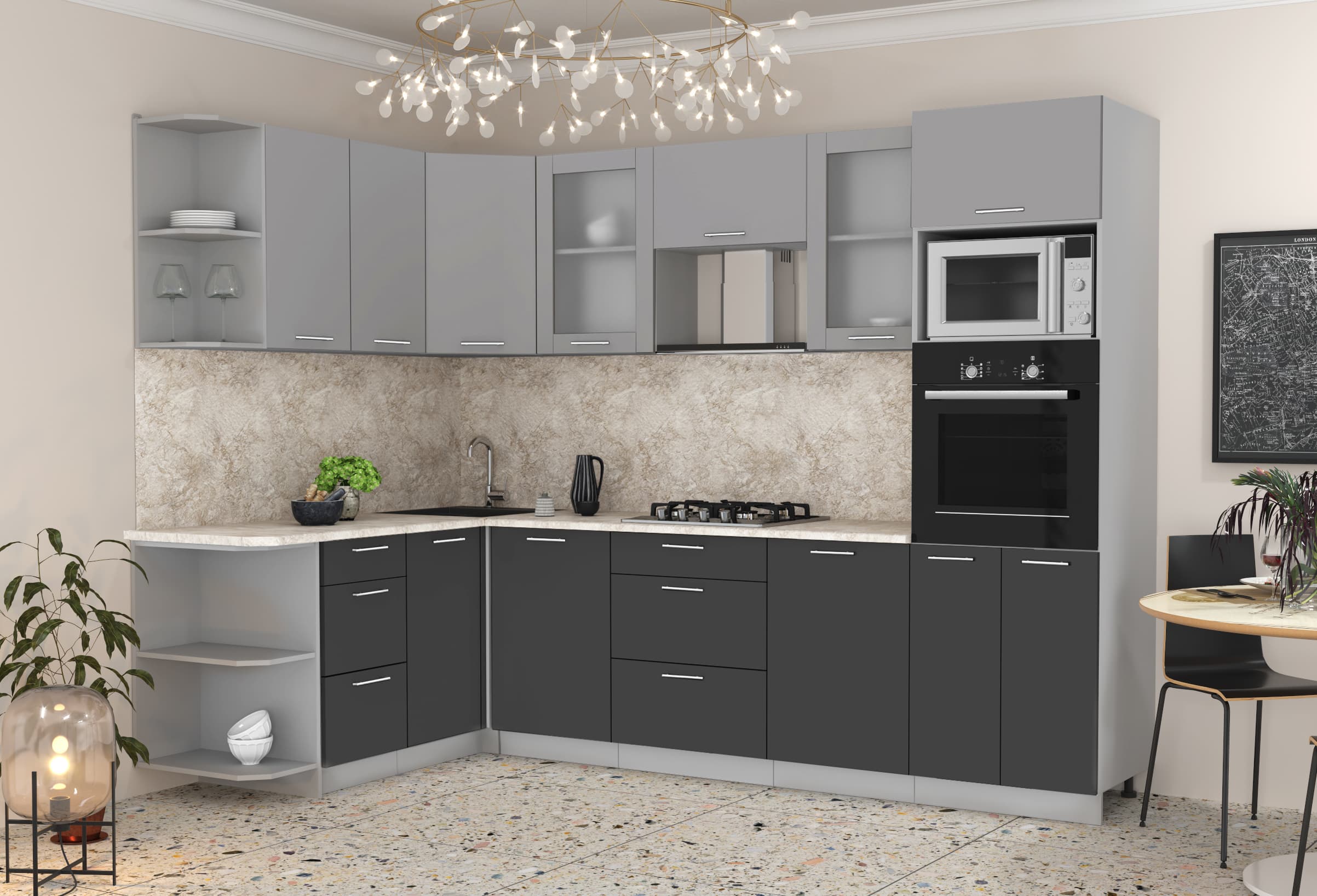 ГОТОВАЯ КУХНЯ МИЛА 1,68X2,80 (СЕРЕБРО/ АНТРАЦИТ) - Yuta.by