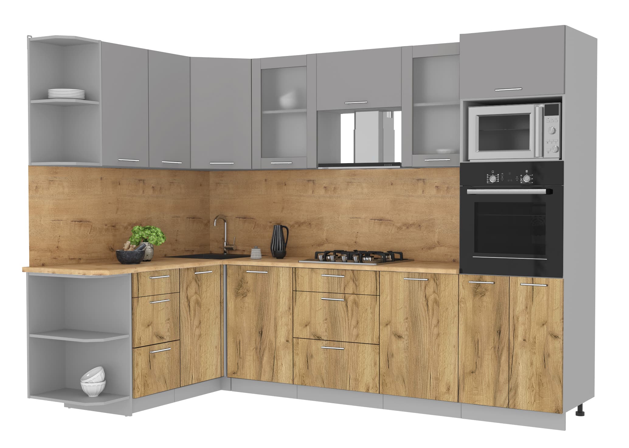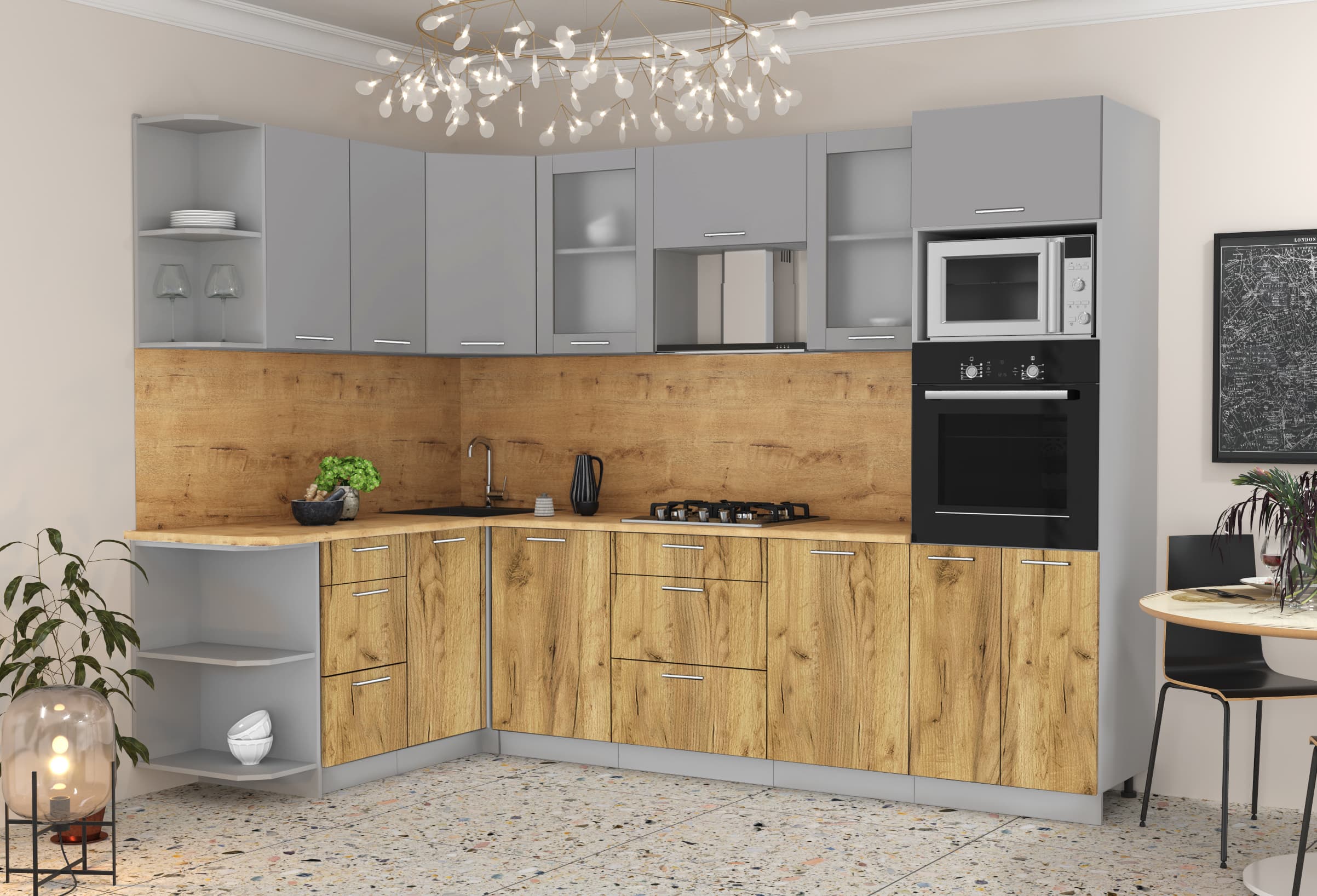 ГОТОВАЯ КУХНЯ МИЛА 1,68X2,80 (СЕРЕБРО/ ДУБ ЗОЛОТОЙ) - Yuta.by