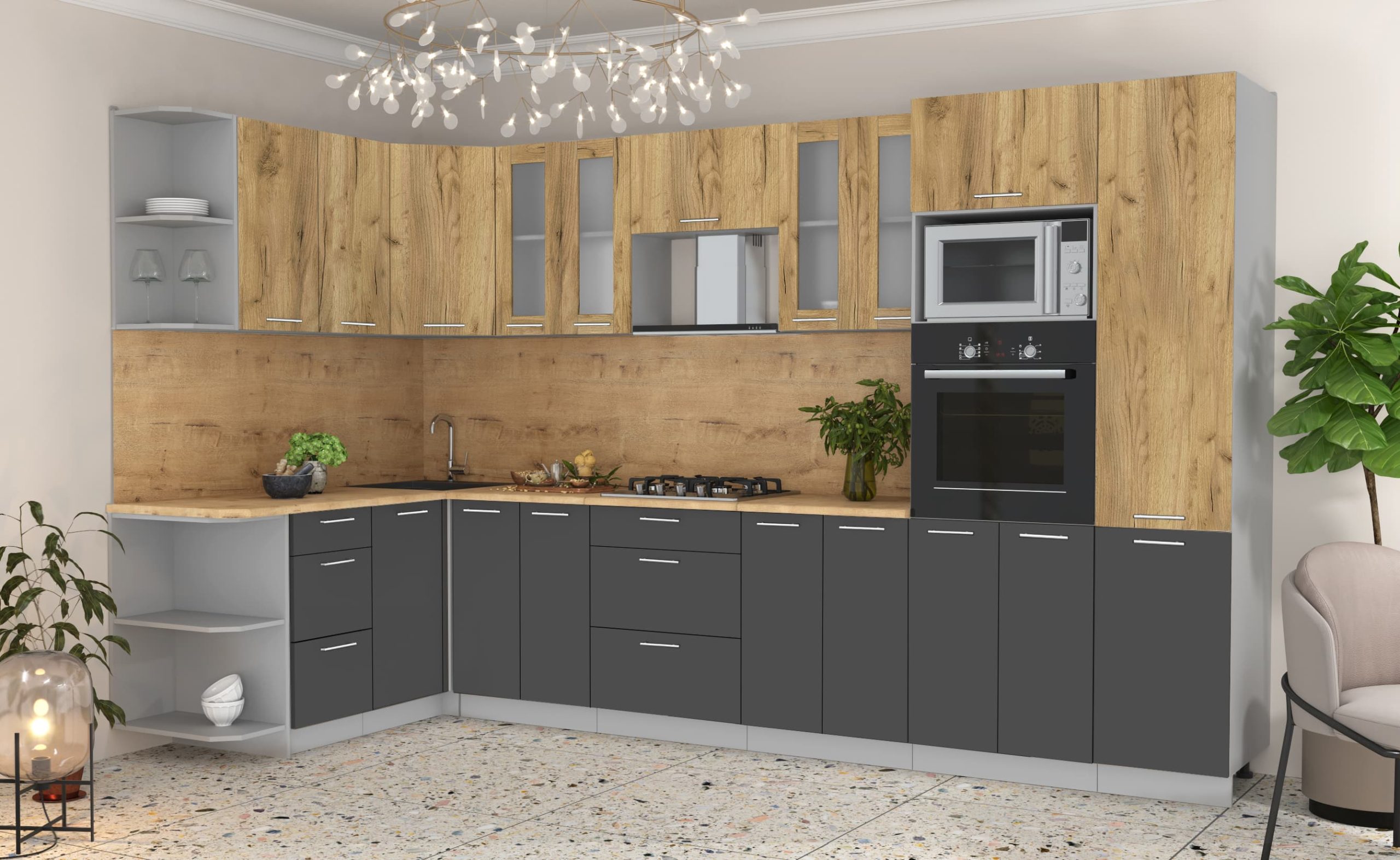 ГОТОВАЯ КУХНЯ МИЛА 1,68X3,40 (ДУБ ЗОЛОТОЙ/ АНТРАЦИТ)