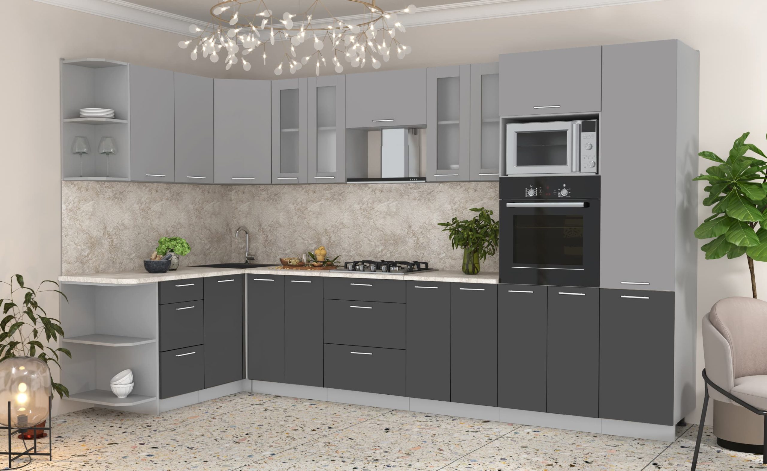 ГОТОВАЯ КУХНЯ МИЛА 1,68X3,40 (СЕРЕБРО/ АНТРАЦИТ)