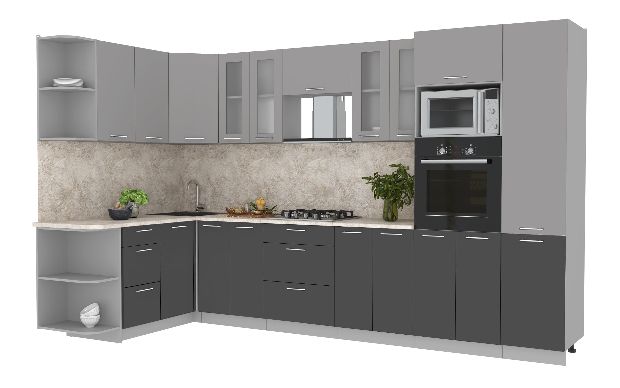 ГОТОВАЯ КУХНЯ МИЛА 1,68X3,40 (СЕРЕБРО/ АНТРАЦИТ) - Yuta.by