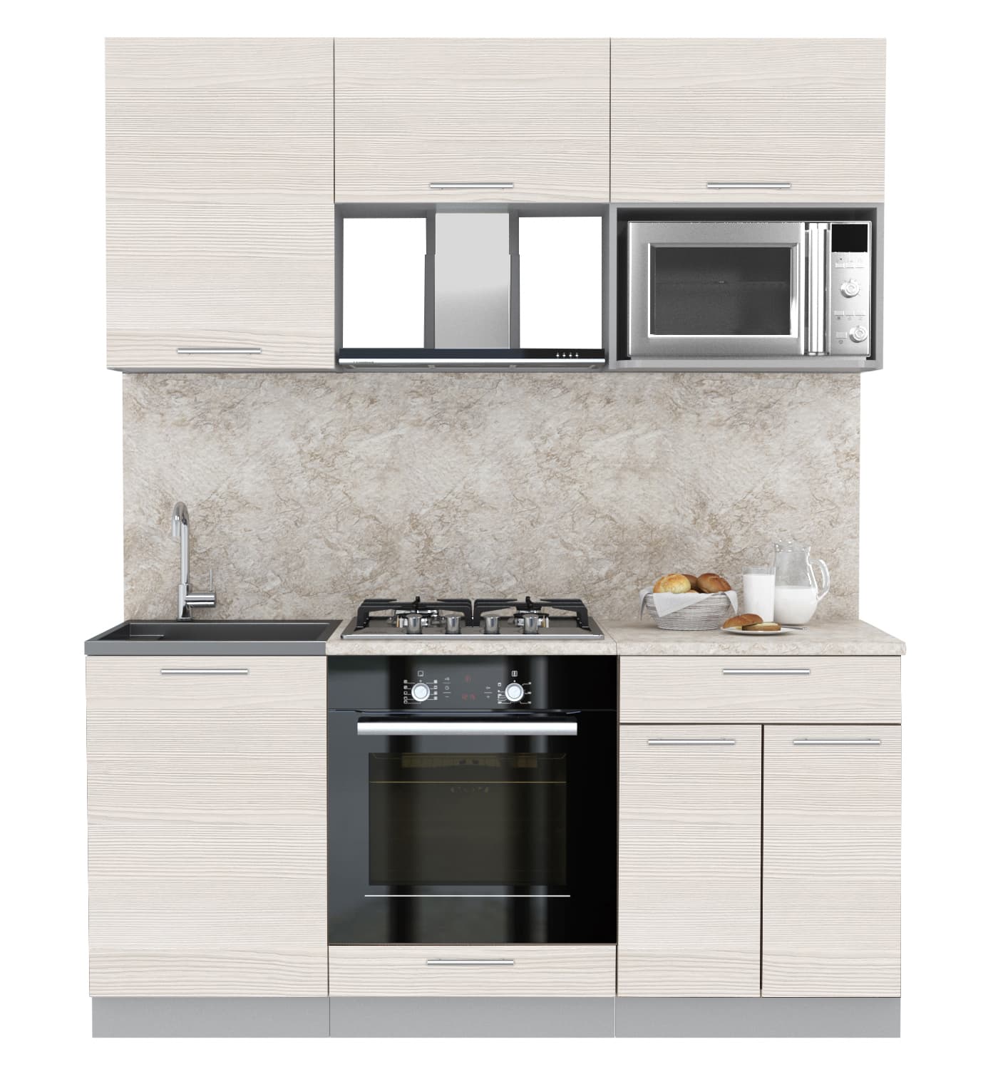 ГОТОВАЯ КУХНЯ МИЛА 1,7 ВТ (ВУДЛАЙН КРЕМОВЫЙ/ ВУДЛАЙН КРЕМОВЫЙ) - Yuta.by