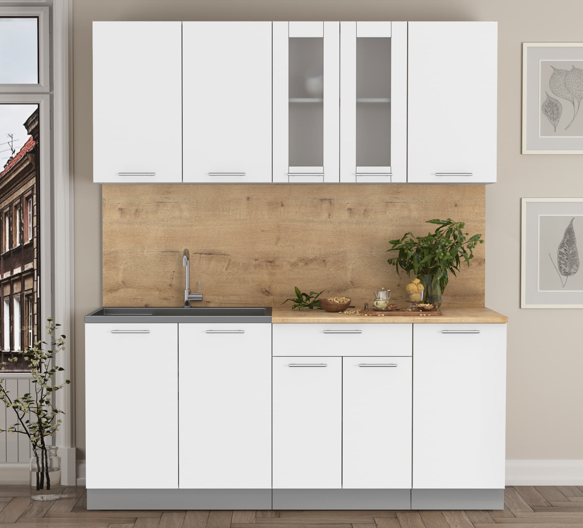 ГОТОВАЯ КУХНЯ МИЛА 1,8 (БЕЛЫЙ/ БЕЛЫЙ) - Yuta.by