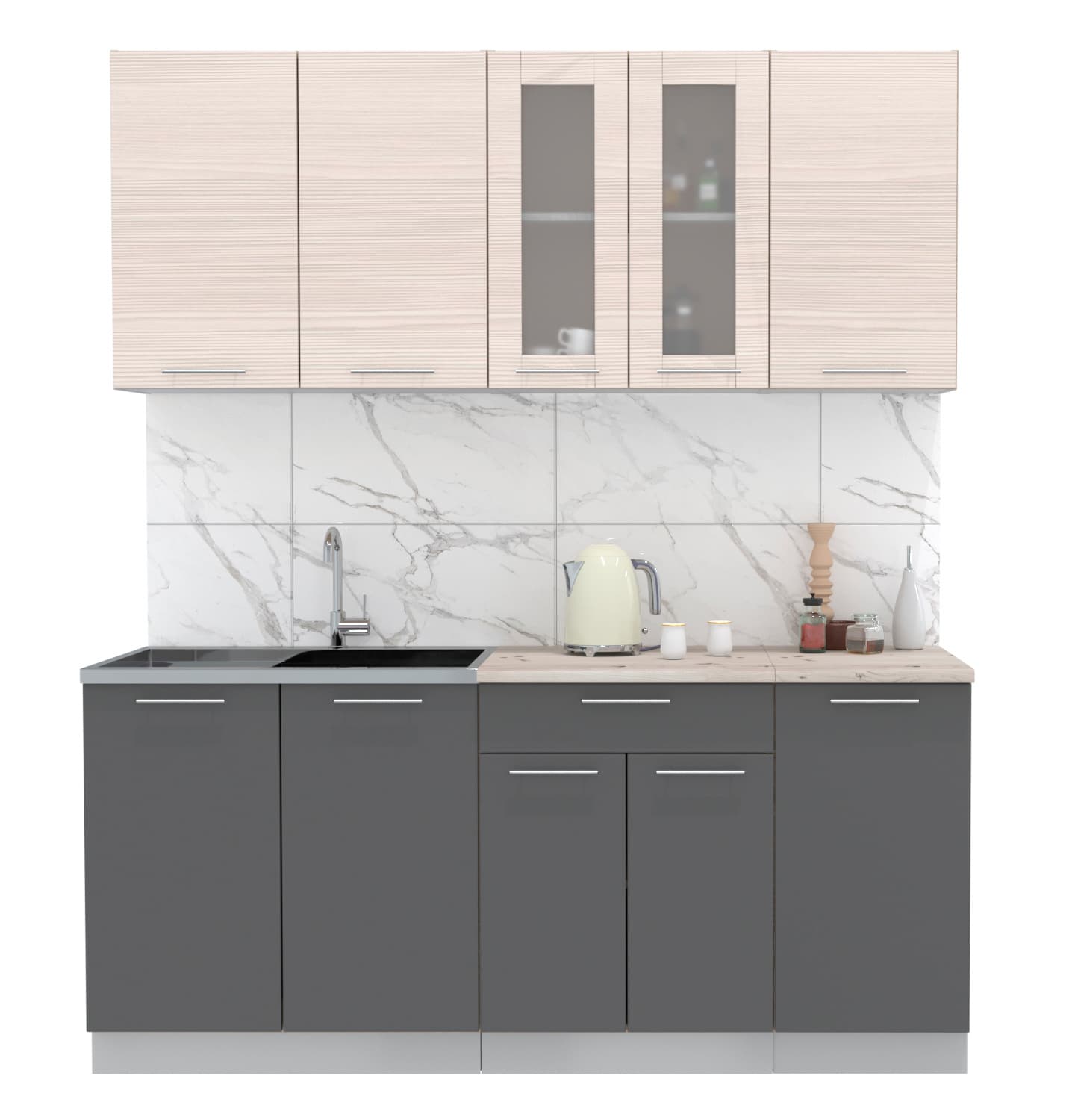 ГОТОВАЯ КУХНЯ МИЛА 1,8 (ВУДЛАЙН КРЕМОВЫЙ/ АНТРАЦИТ) - Yuta.by