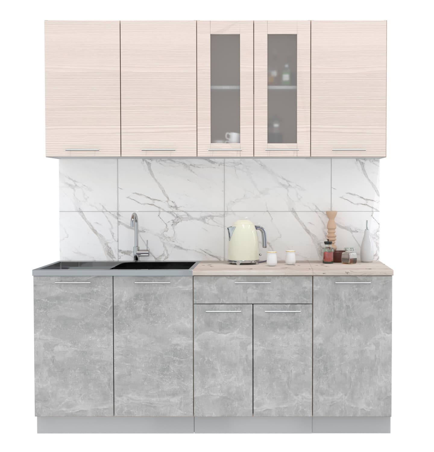 ГОТОВАЯ КУХНЯ МИЛА 1,8 (ВУДЛАЙН КРЕМОВЫЙ/ БЕТОН)