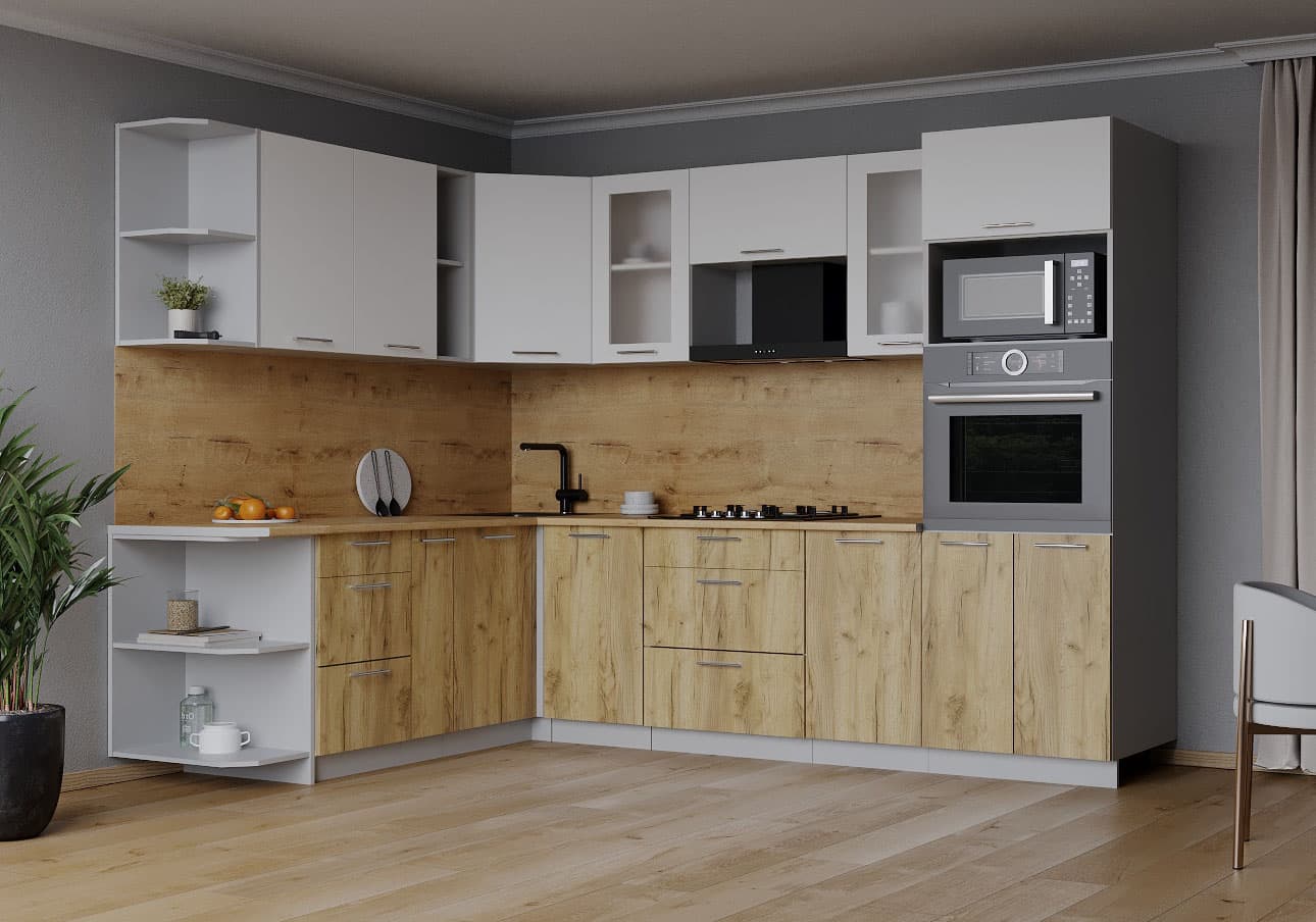 ГОТОВАЯ КУХНЯ МИЛА 1,88X2,60 (БЕЛЫЙ/ ДУБ ЗОЛОТОЙ)