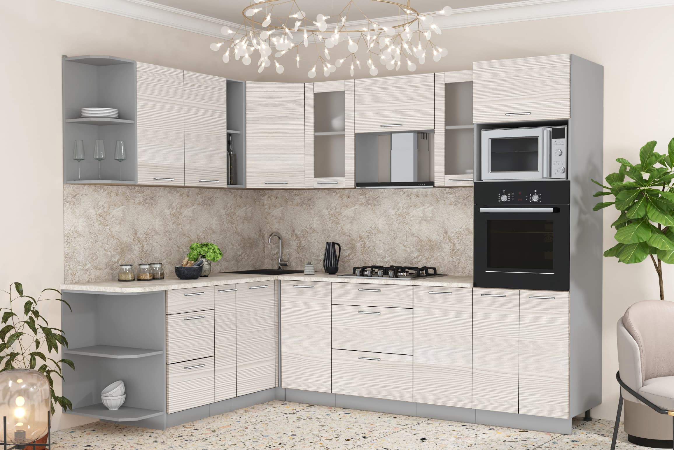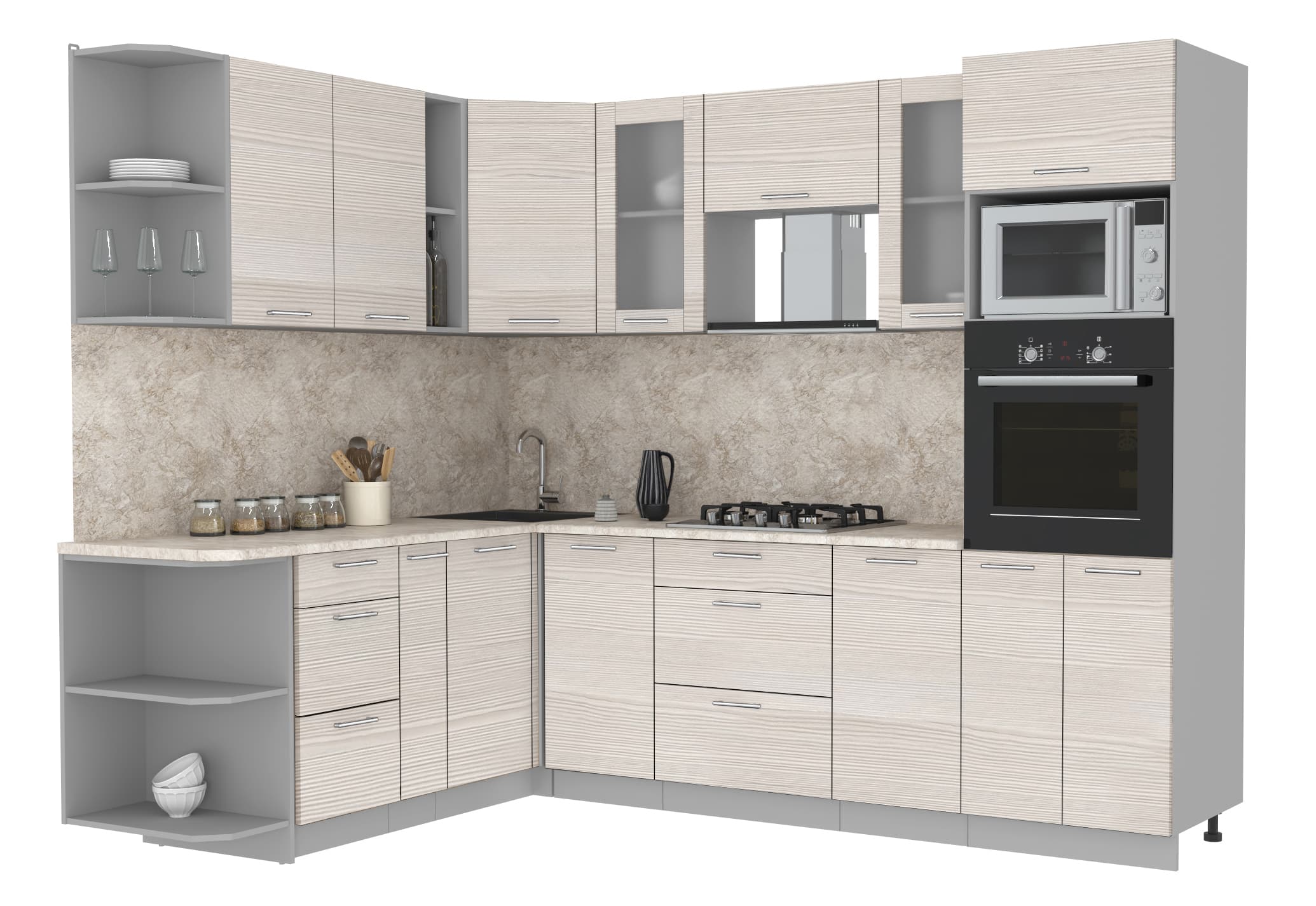 ГОТОВАЯ КУХНЯ МИЛА 1,88X2,60 (ВУДЛАЙН КРЕМОВЫЙ/ ВУДЛАЙН КРЕМОВЫЙ) - Yuta.by