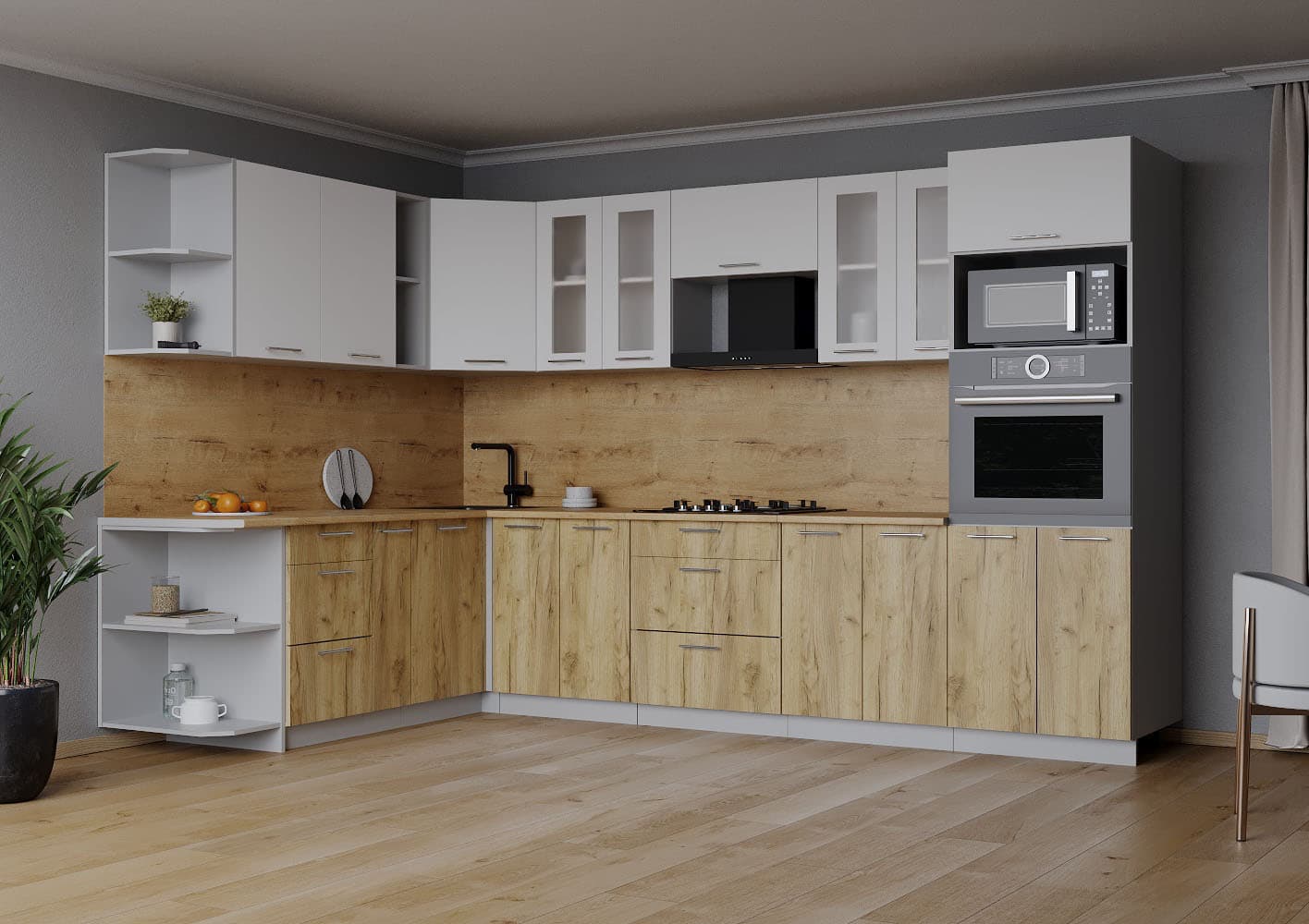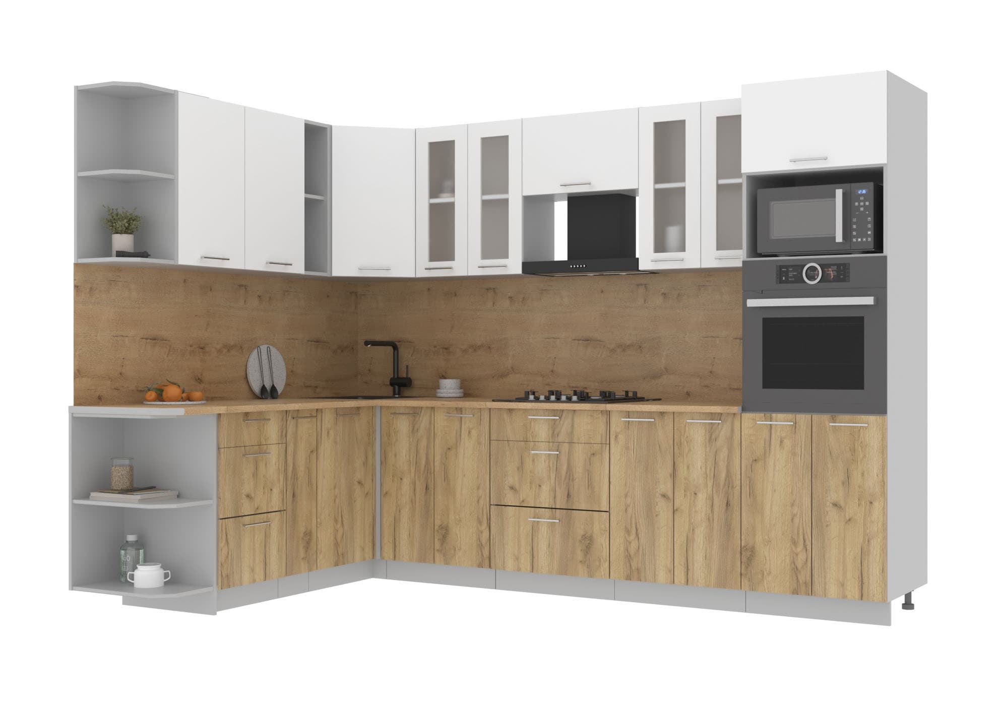 ГОТОВАЯ КУХНЯ МИЛА 1,88X3,00 (БЕЛЫЙ/ ДУБ ЗОЛОТОЙ) - Yuta.by