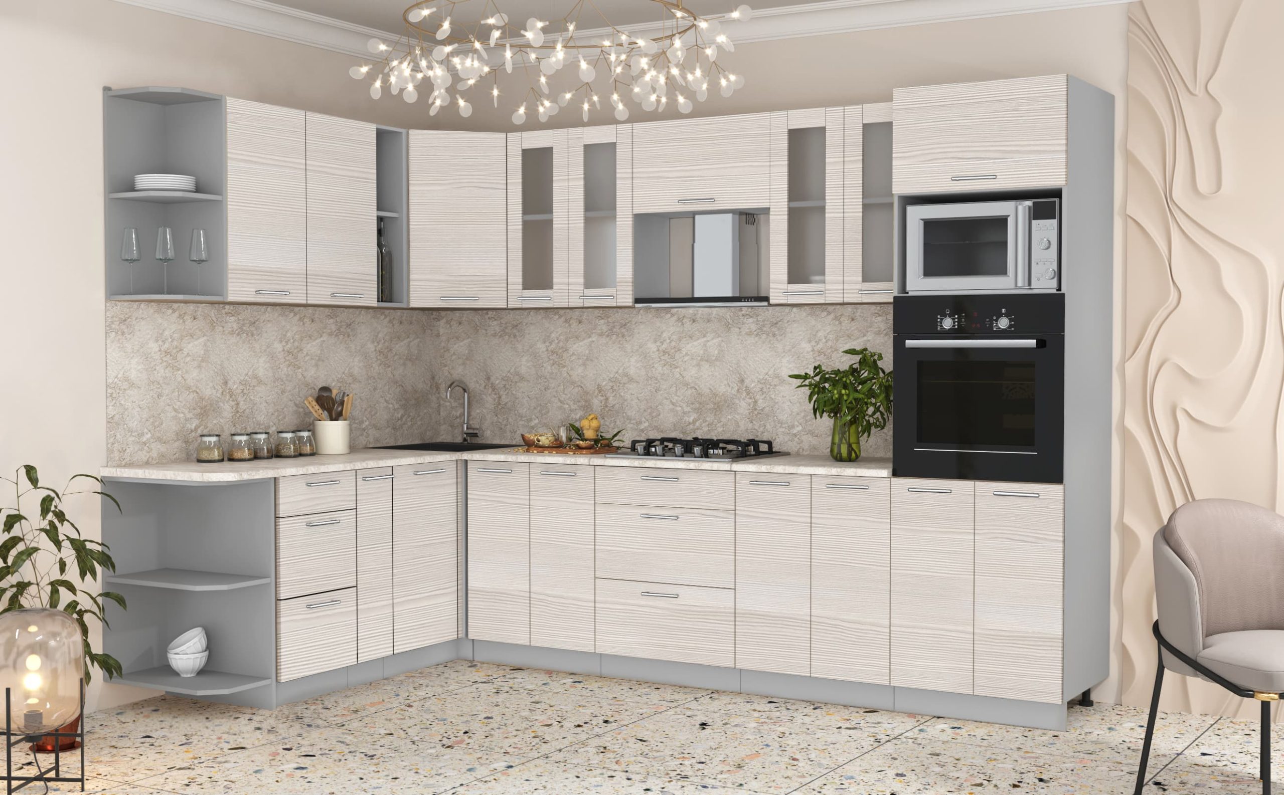 ГОТОВАЯ КУХНЯ МИЛА 1,88X3,00 (ВУДЛАЙН КРЕМОВЫЙ/ ВУДЛАЙН КРЕМОВЫЙ) - Yuta.by