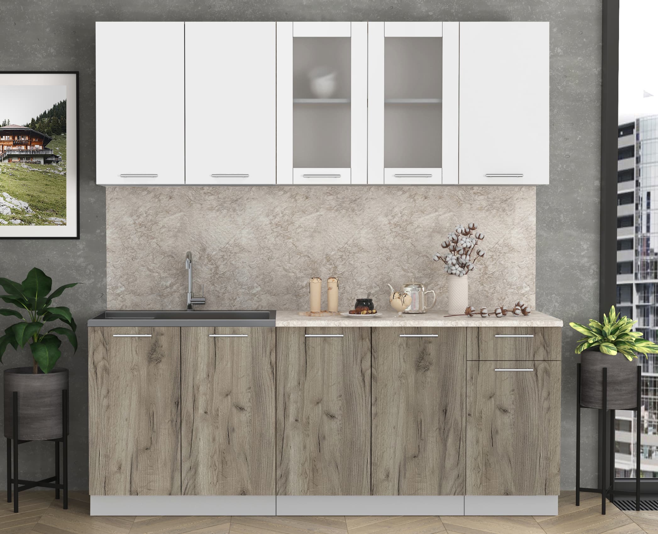ГОТОВАЯ КУХНЯ МИЛА 2,0 (БЕЛЫЙ/ ДУБ СЕРЫЙ)