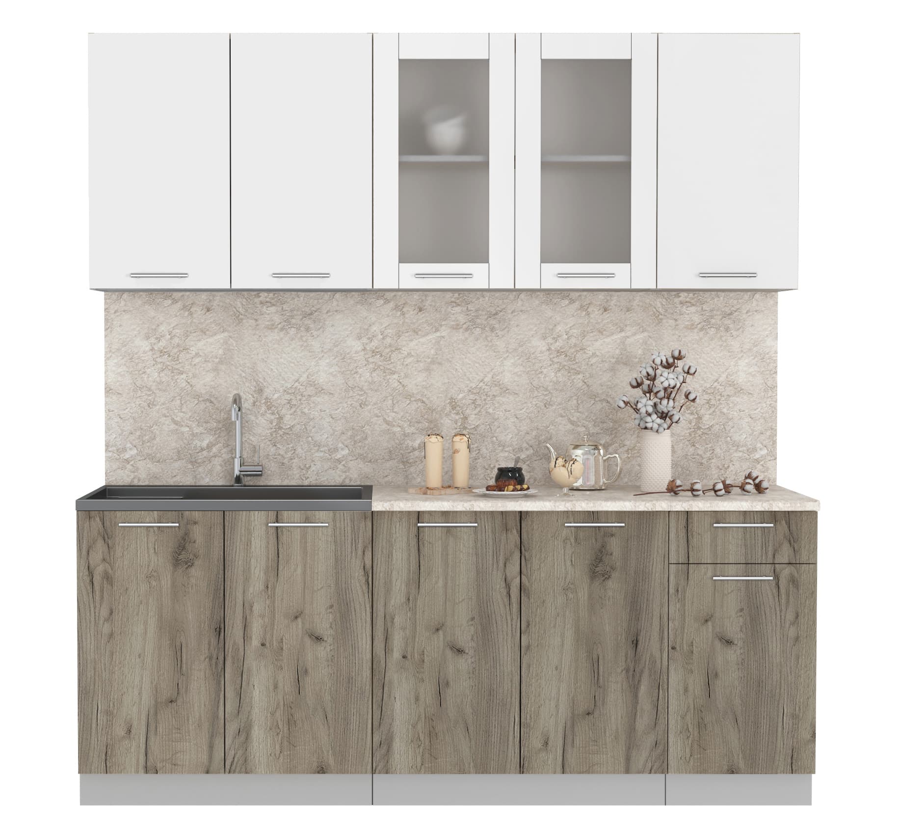 ГОТОВАЯ КУХНЯ МИЛА 2,0 (БЕЛЫЙ/ ДУБ СЕРЫЙ) - Yuta.by